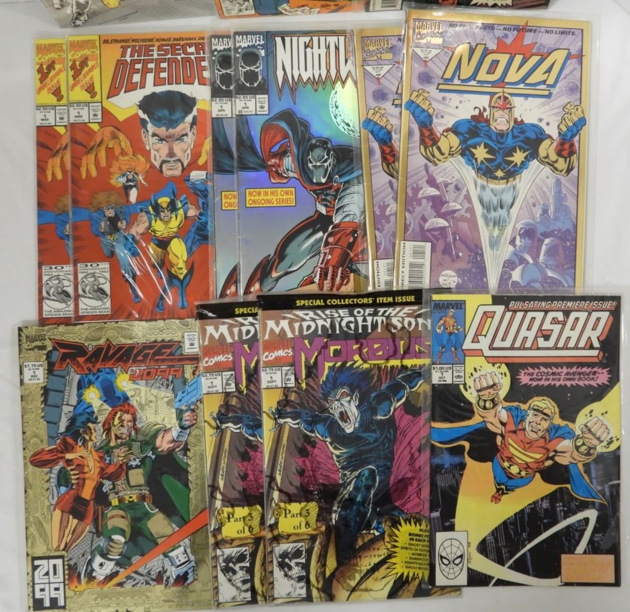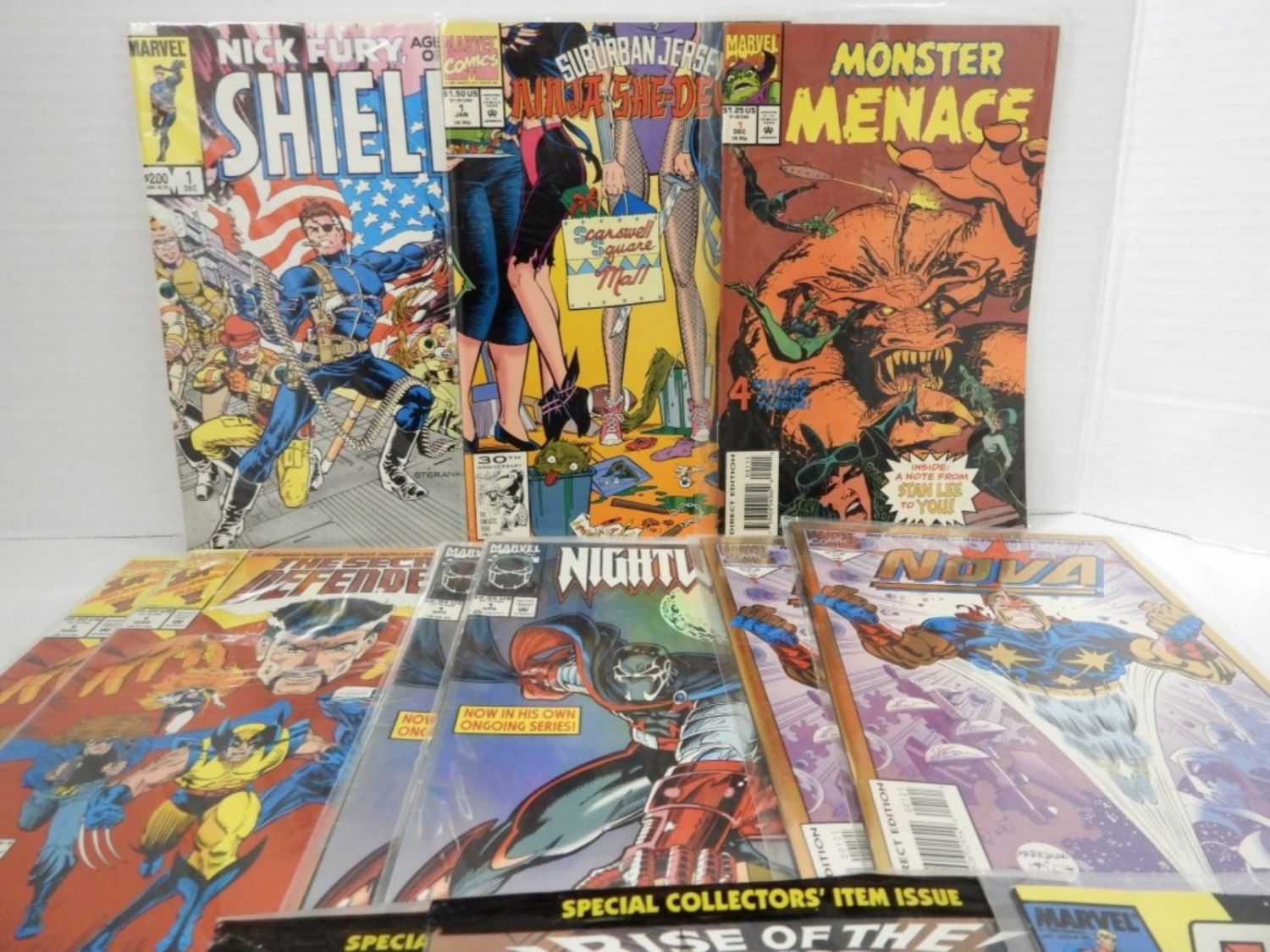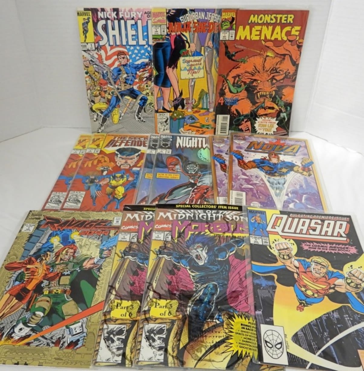 NICE MIX – SOME DUPLICATES – NICK FURY AGENT OF SHIELD, SUBURBAN JERSEY NINJA SHE-DEVILS, MONSTER MENACE, QUASAR, (2) THE SECRET OF DEFENDERS (2) NIGHTWATCH, (2) NOVA, (2) MORBIUS, RAVAGE 2099 – OVERALL NICE CONDITION