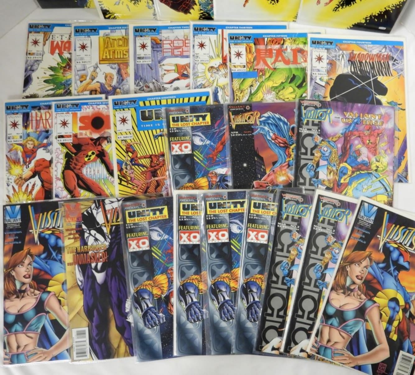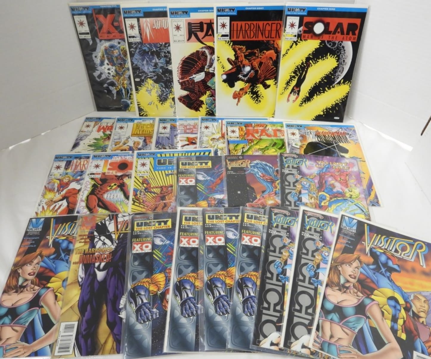 X-O, SHADOWMAN, RAI, HARBINGER, SOLAR, ETERNAL WARRIOR, ARCHER, MAGNUS ROBOT FIGHTER, UNITY, VISITOR & MORE plus (7) DUPLICATES of VISITOR & UNITY – 26 TOTAL COMICS – NICE CONDITION