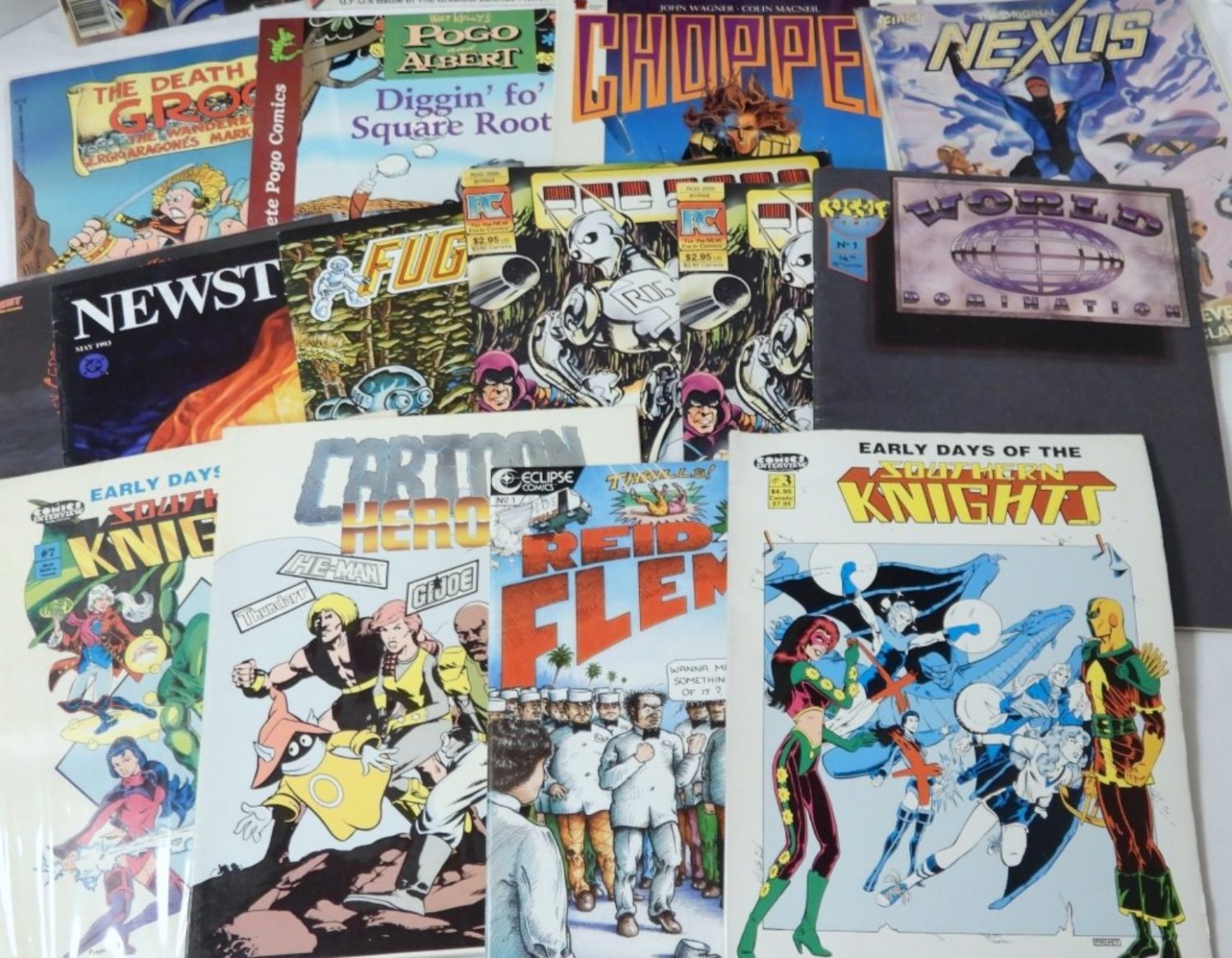 UNIQUE LISTING – HOWARD THE DUCK, TWIN EARTH, STRANGE ENCOUNTERS, TOXIC, DEATH OF GROO, POGO AND ALBERT, CHOPPER NOVEL, NEXUS #1, & MORE