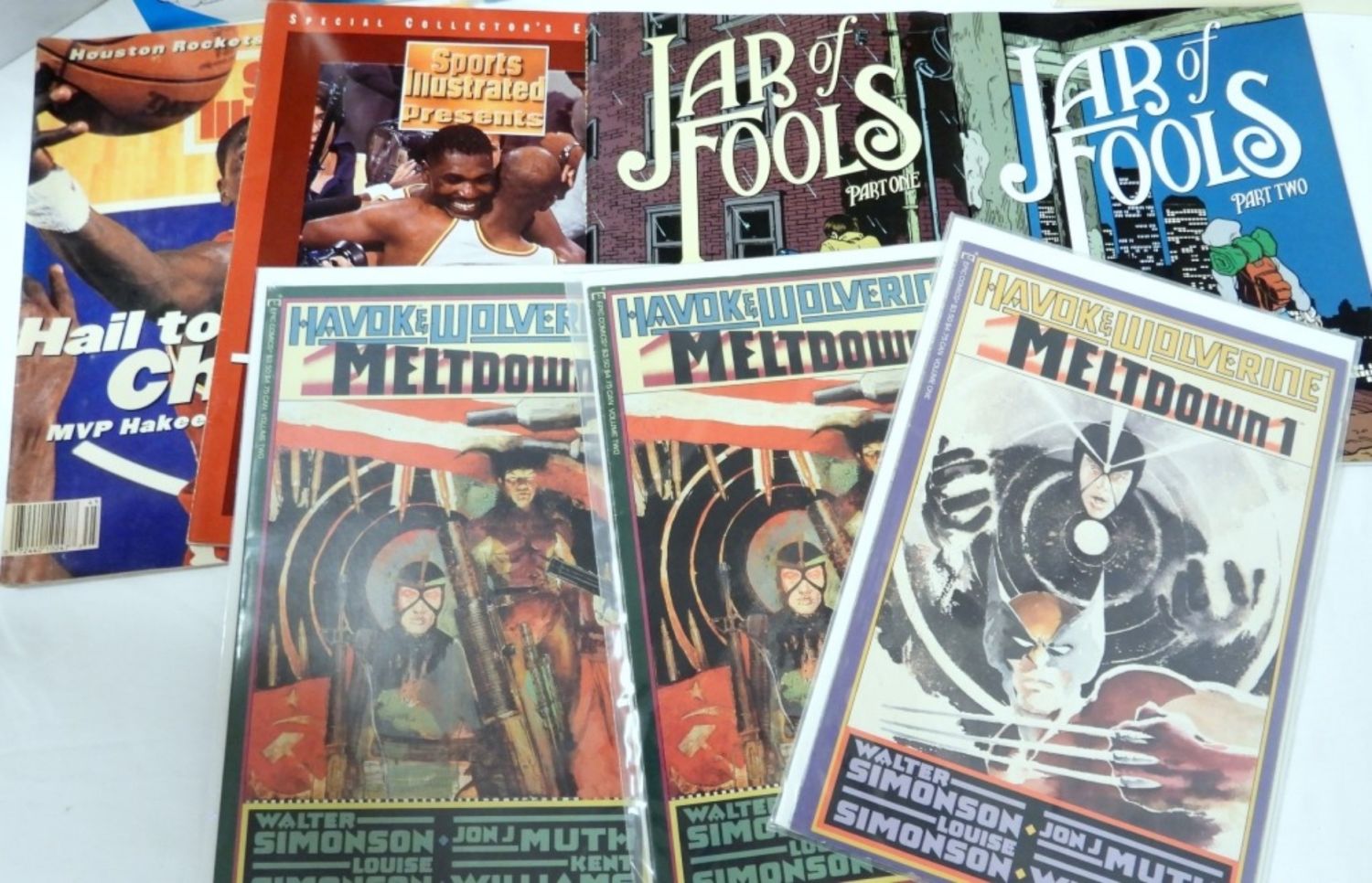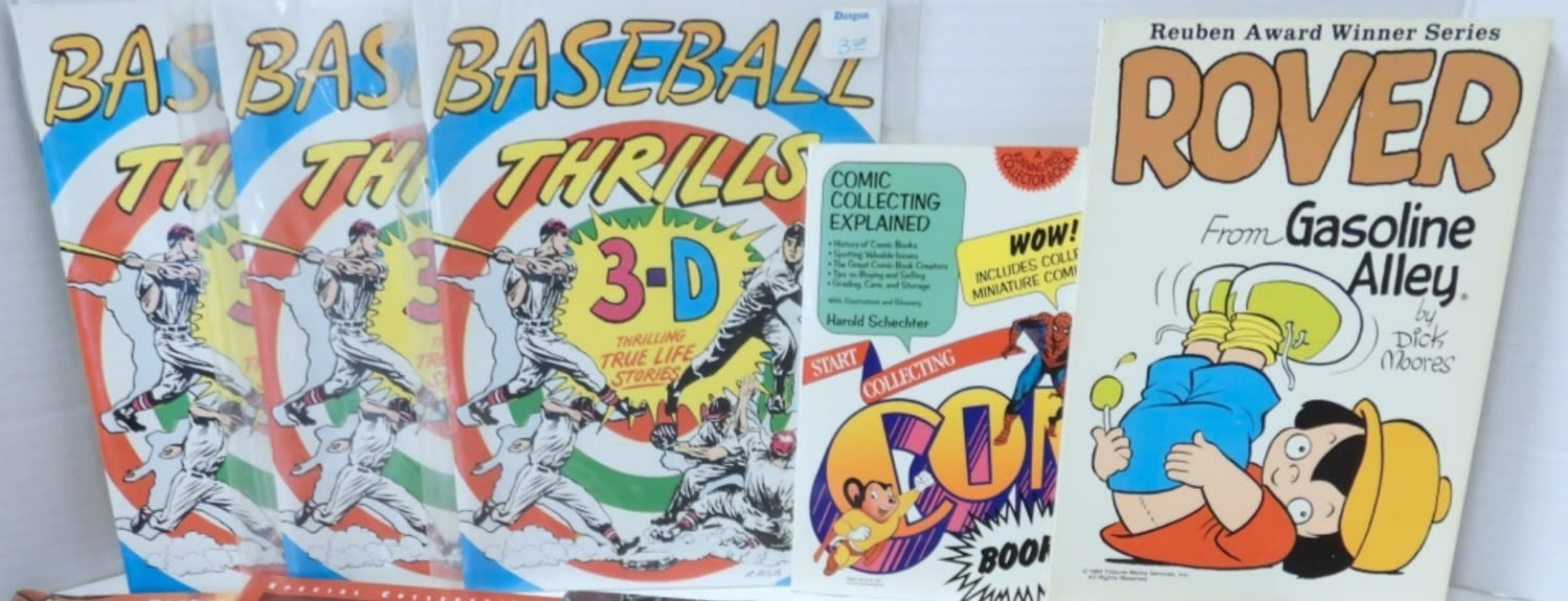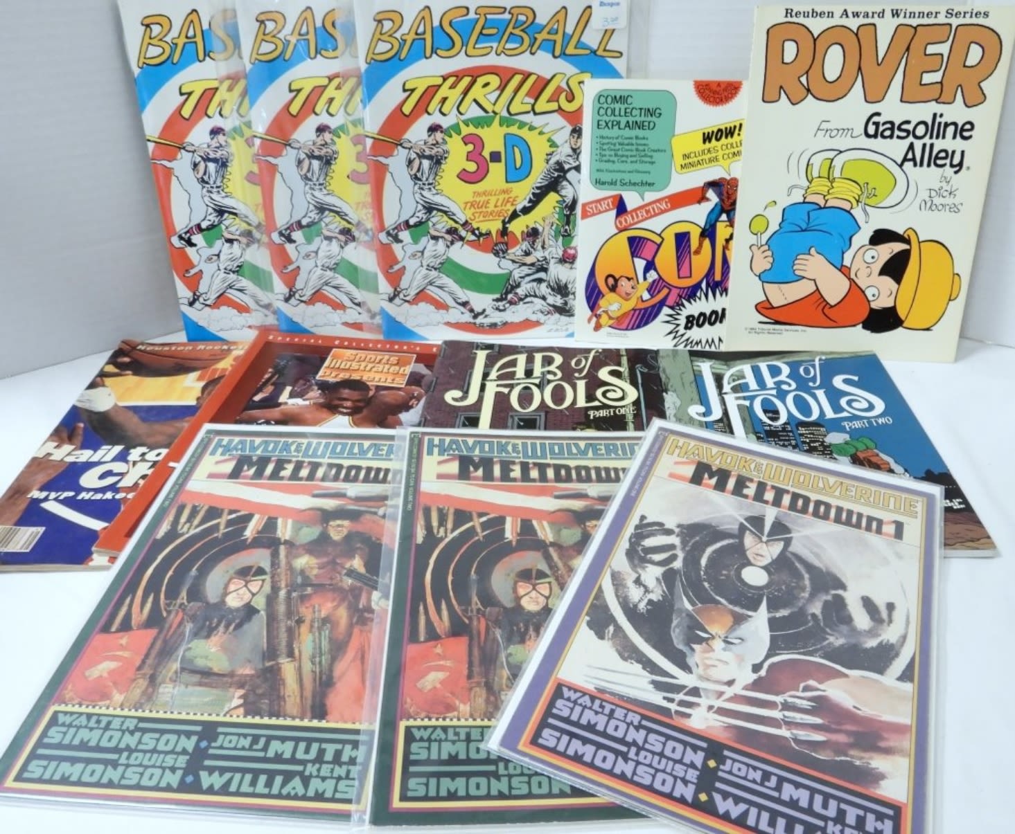 (3) BASEBALL THRILLS 3-D STORY BOOK with GLASSES, (2) SPORTS ILLUSTRATED, COMIC EDUCATION BOOK with MINI COMIC, ROVER, JARS OF FOOLS #1 & #2, MELTDOWN #1 & (2) #2 ISSUES