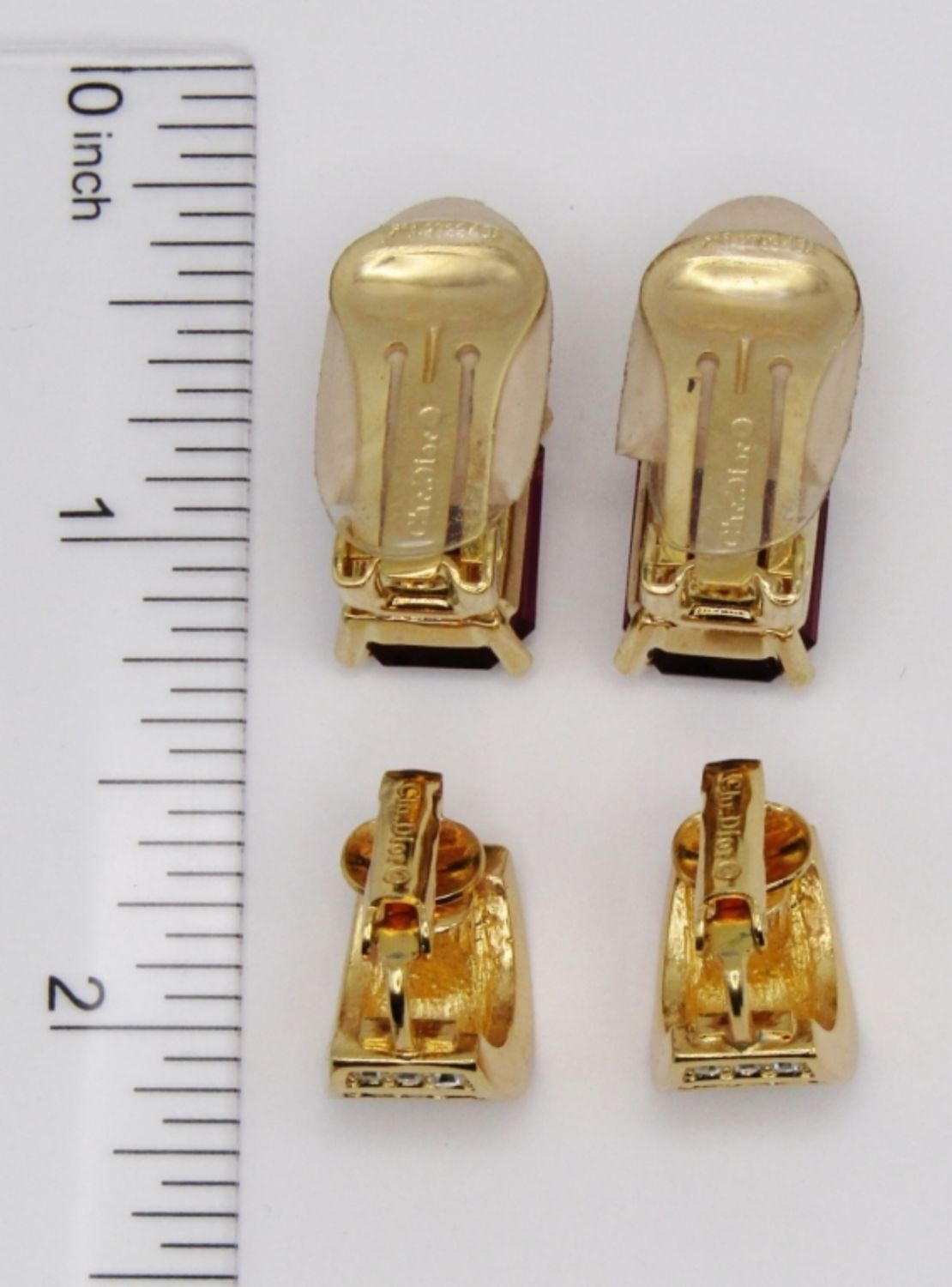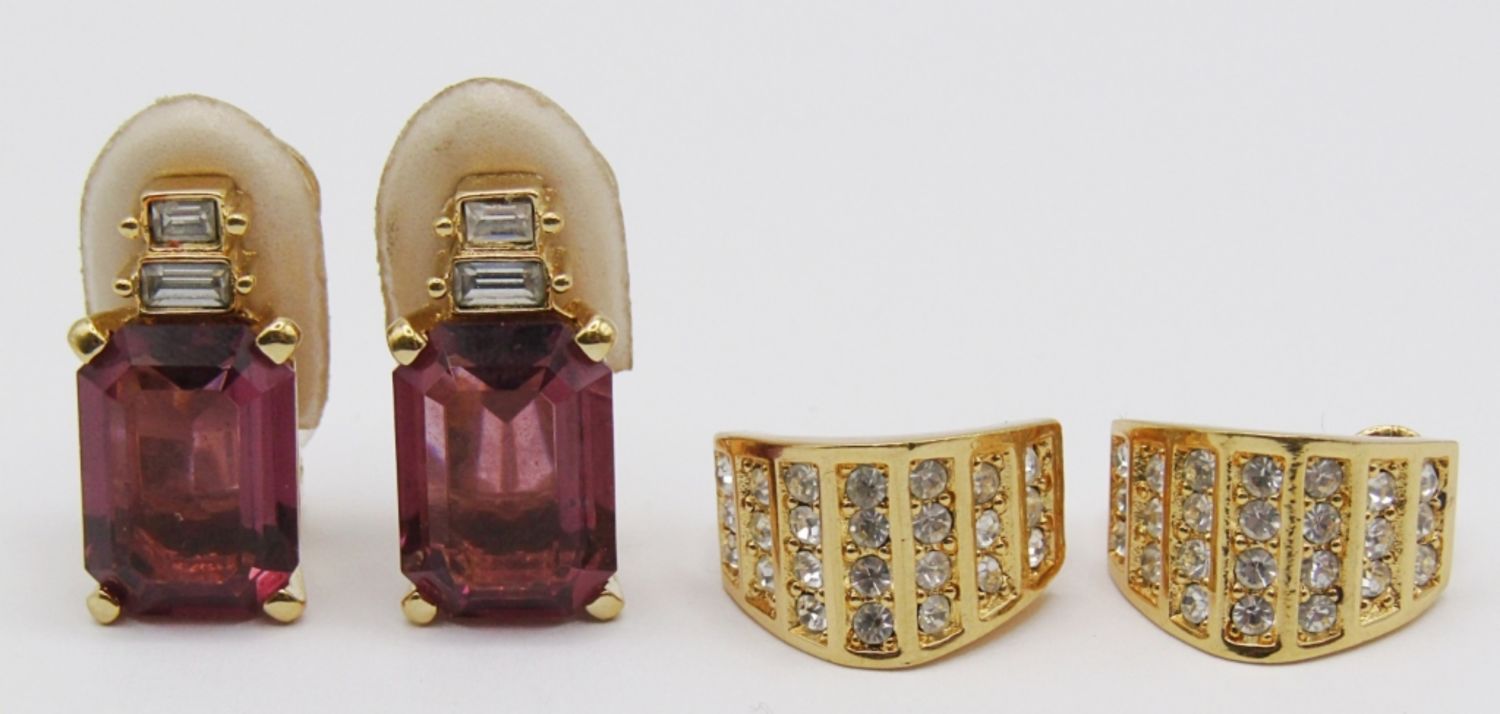 BOTH GOLD TONE WITH GEMSTONES, SIGNED ON BACK.