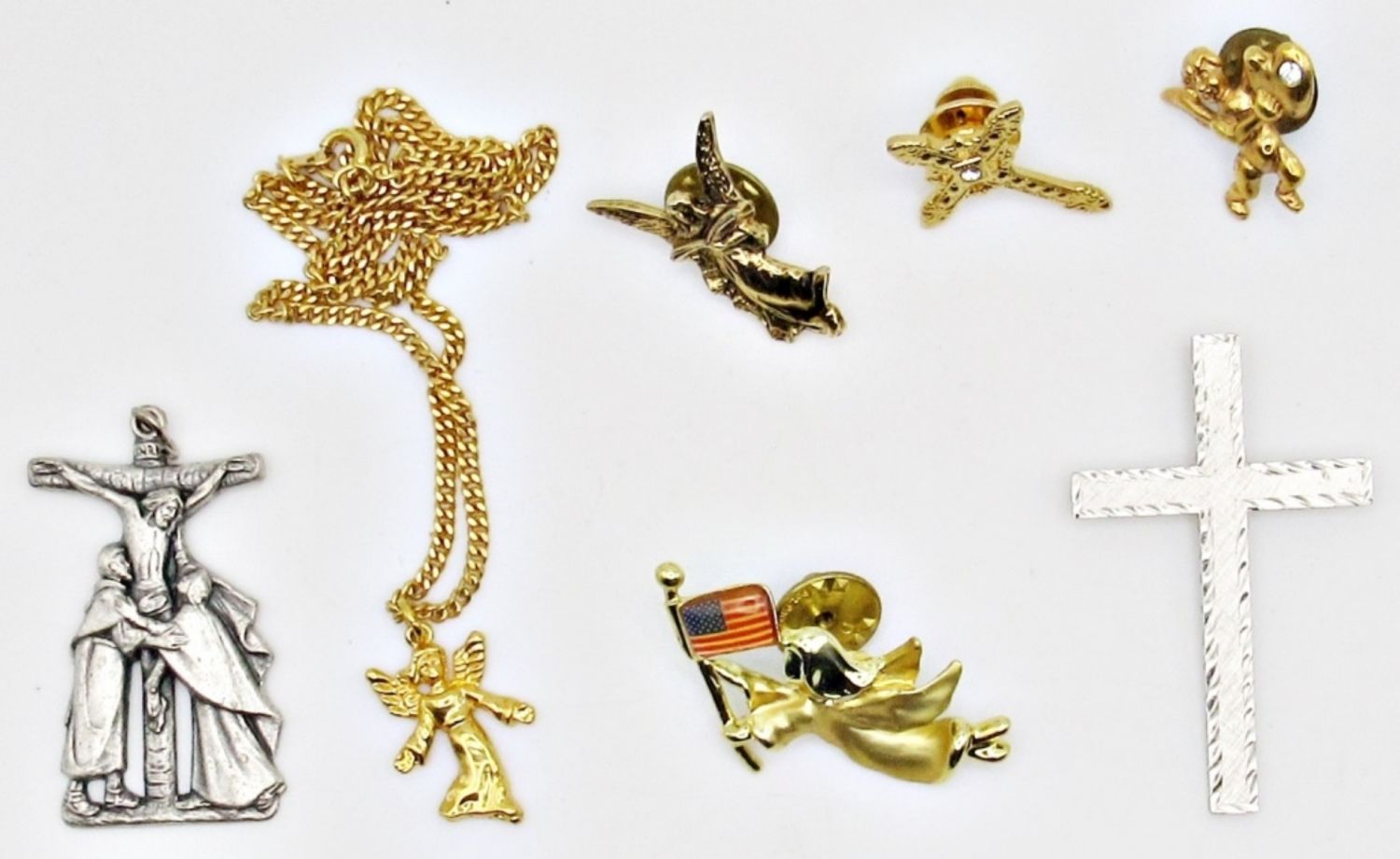 3 ANGEL PINS, AND A CROSS PIN