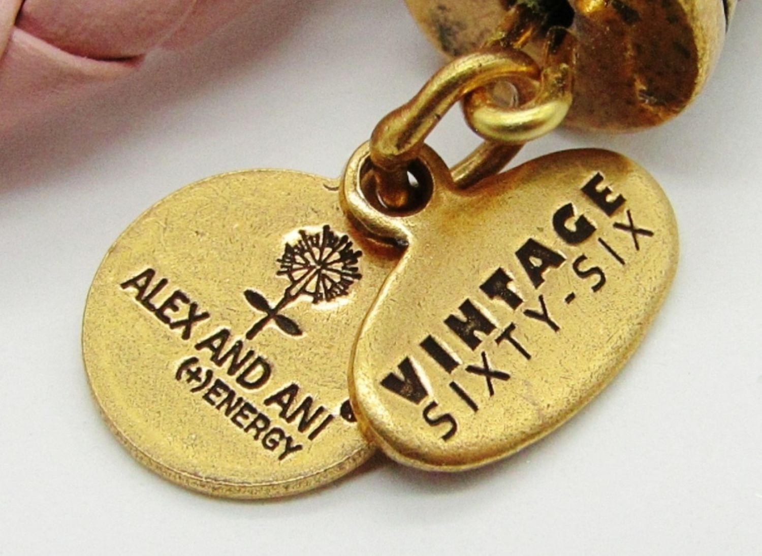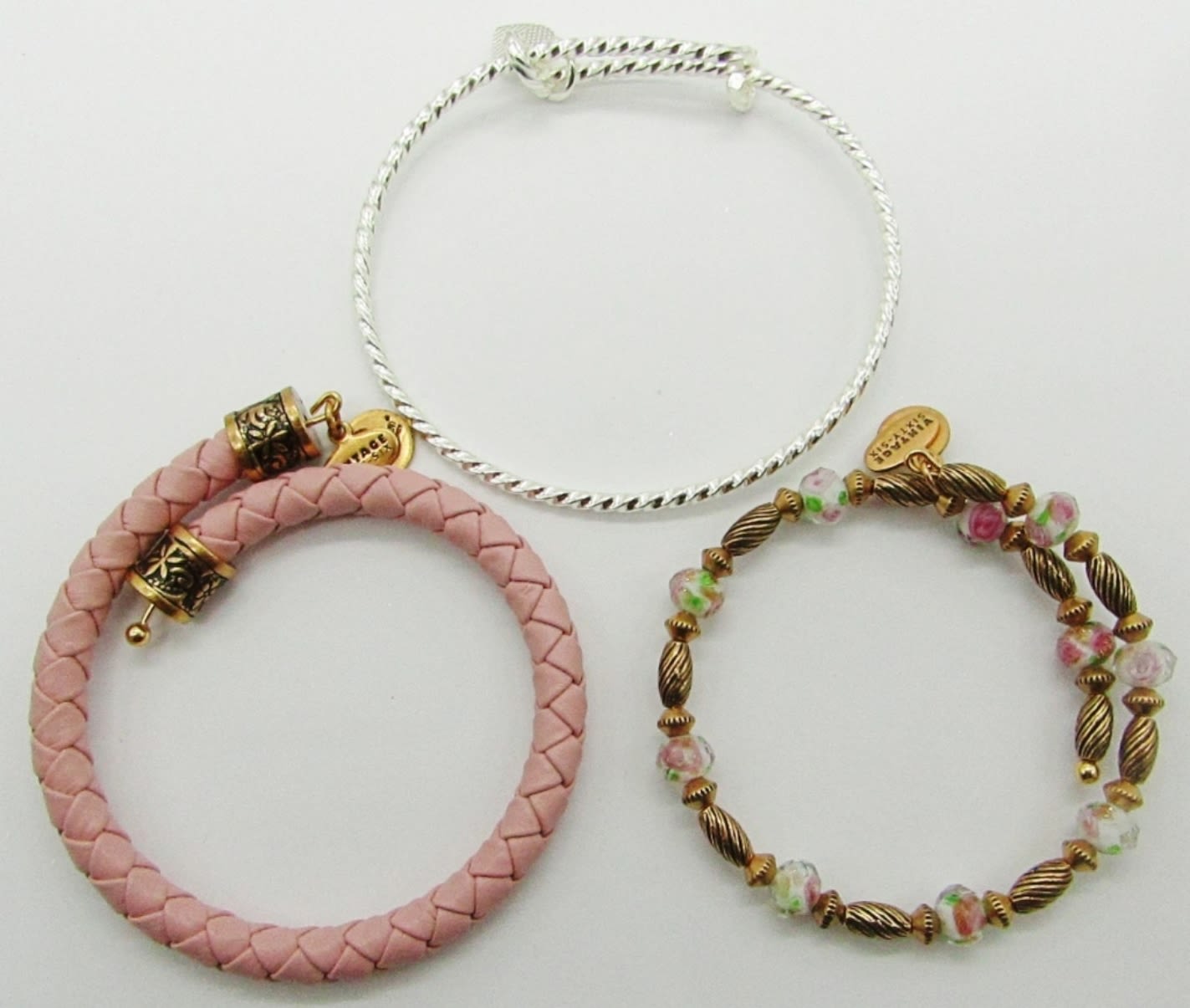 GOLD TONE/ROSE BEADED & PINK WOVEN ARE “VINTAGE SIXTY-SIX” WITH “(+) ENERGY TECHNOLOGY”. ALL APPROX 2.5″ IN DIAMETER.