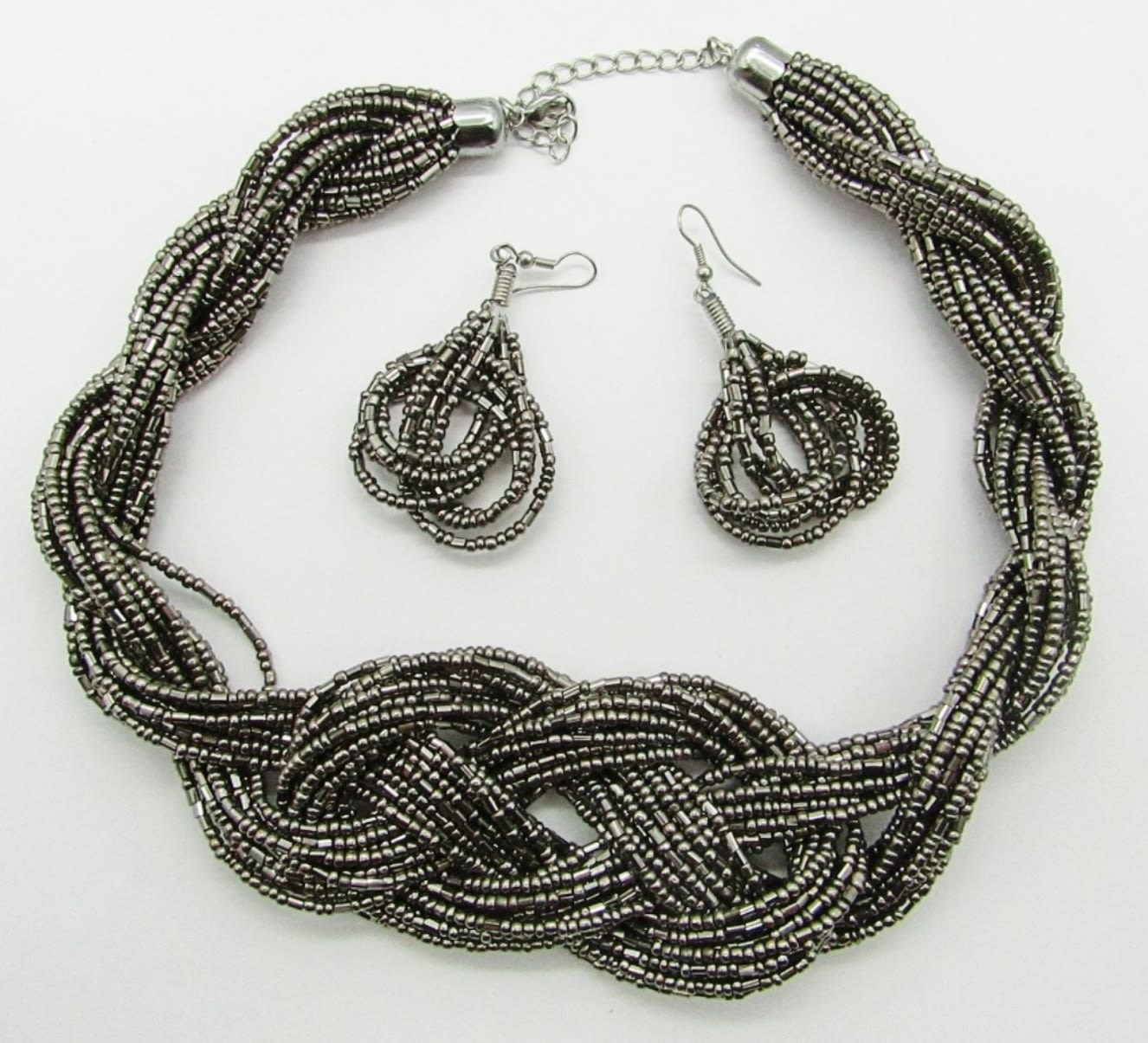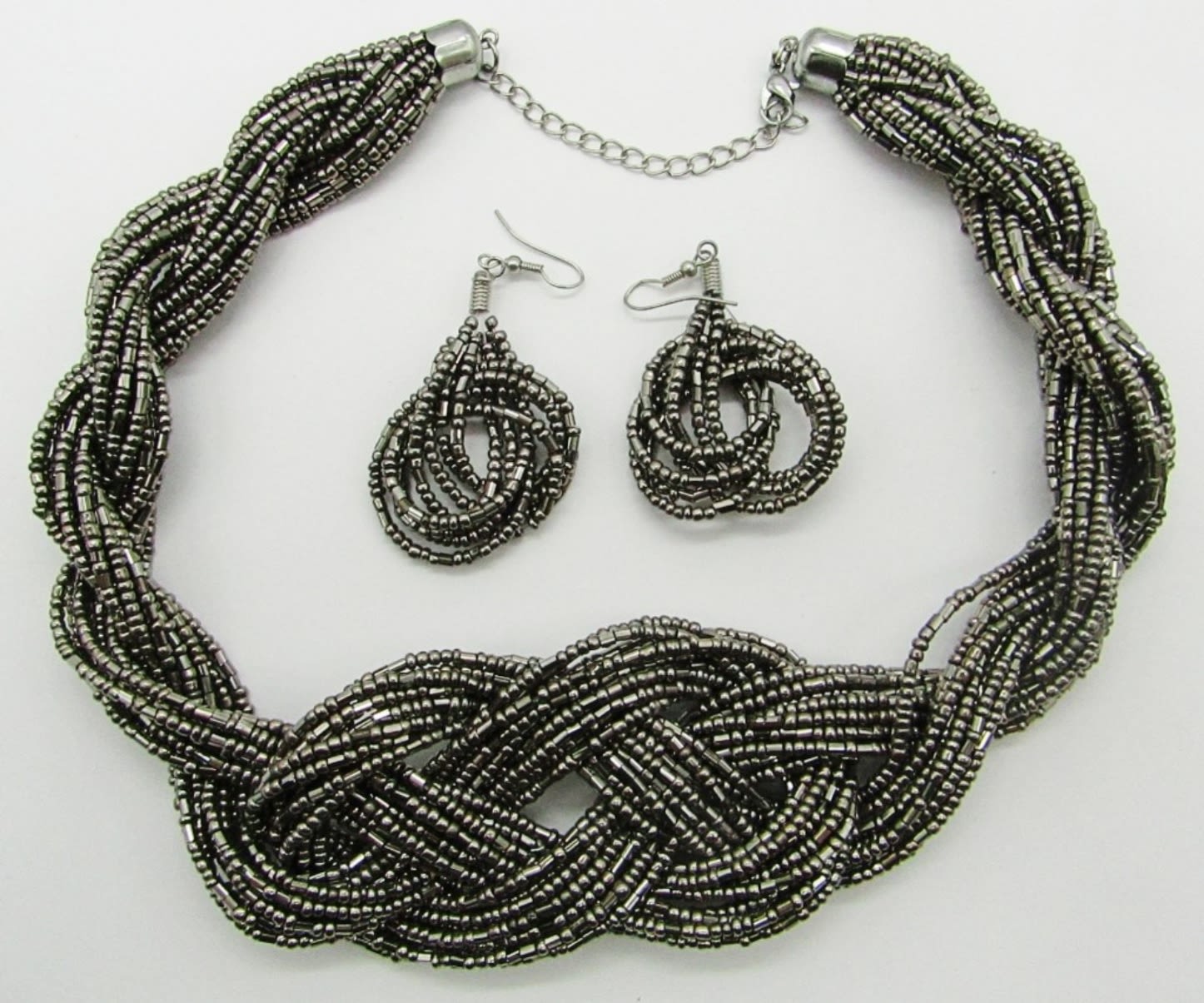 20″ NECKLACE & PIERCED DANGLE EARRINGS. WOVEN/BRAIDED STYLE.