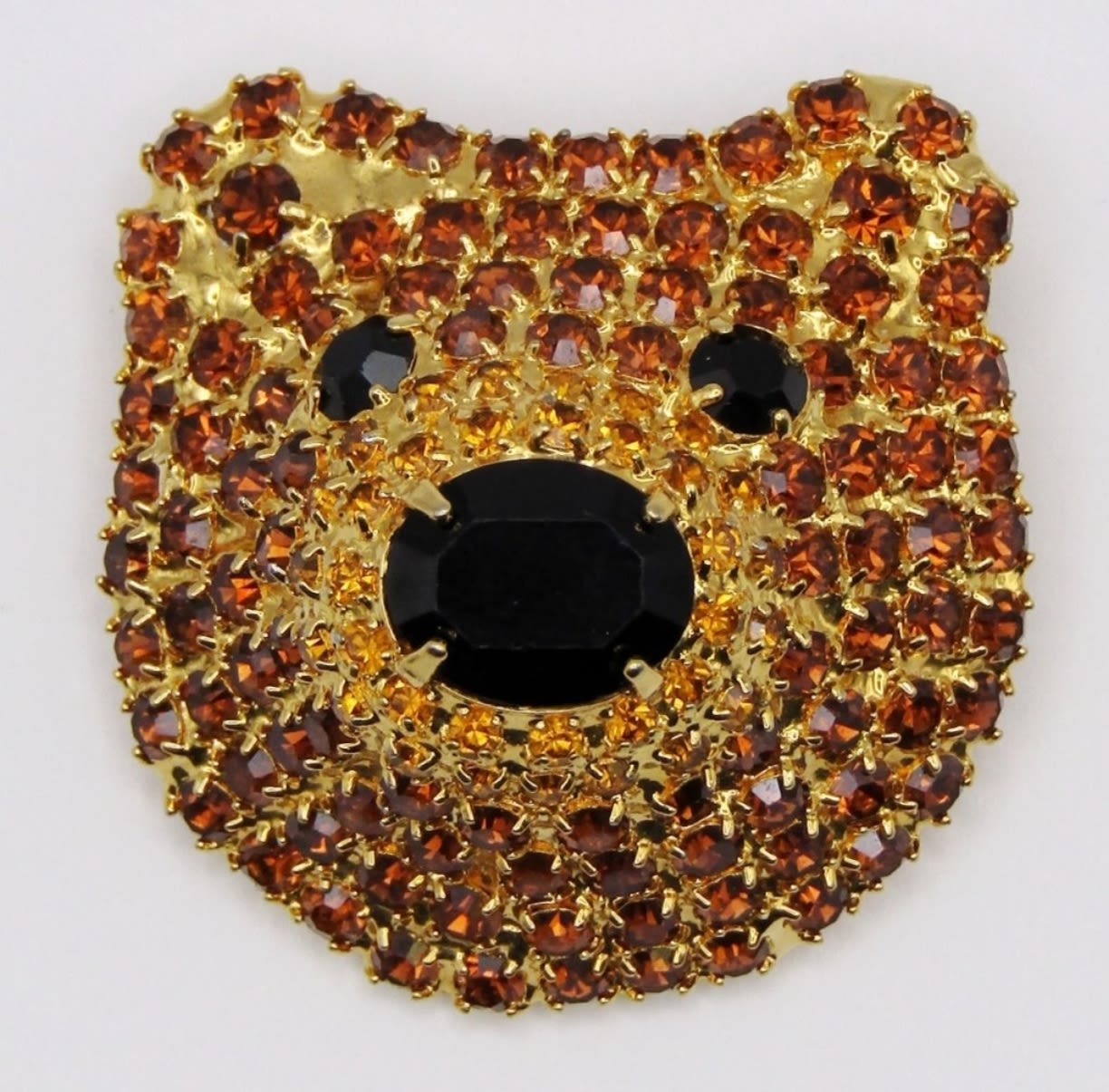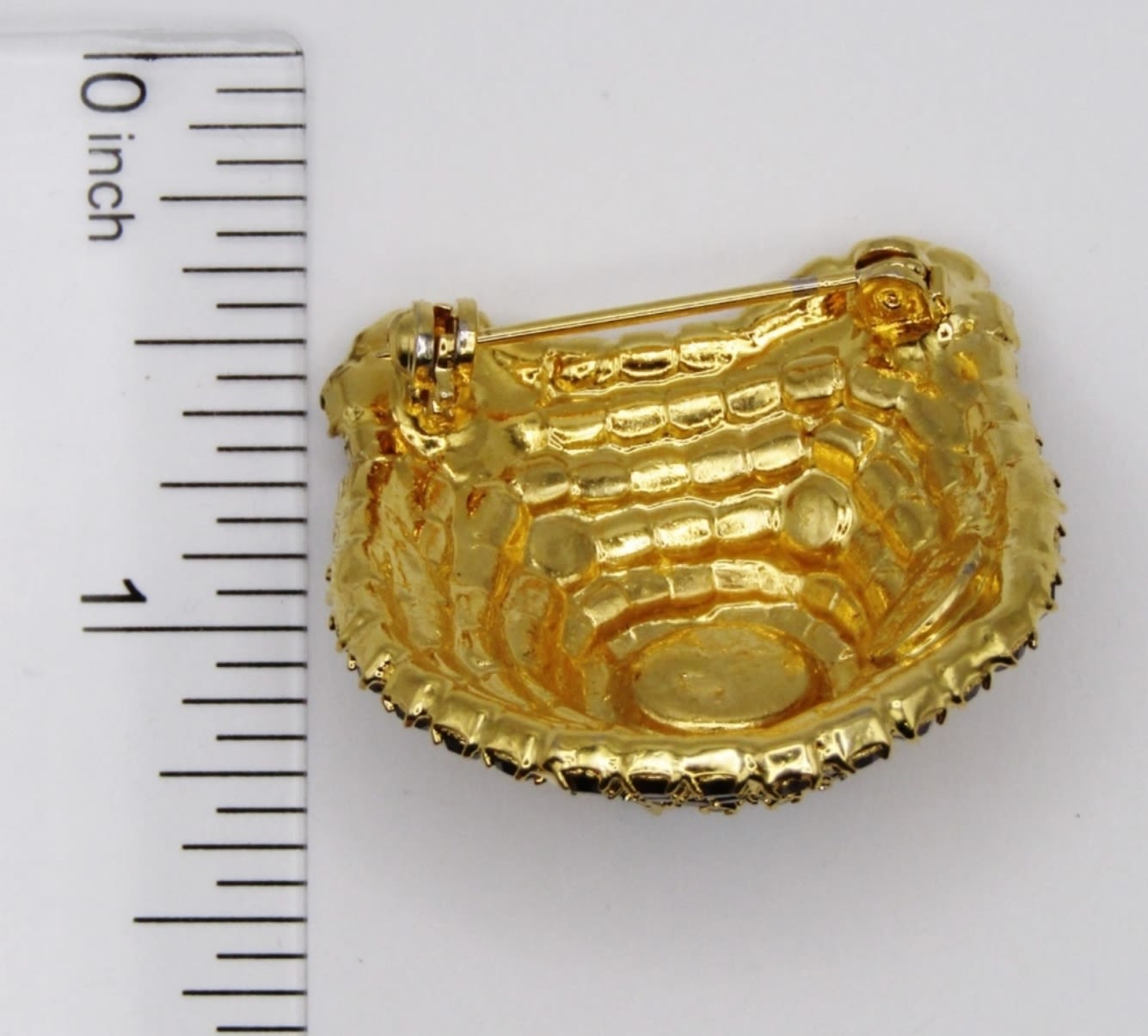 1.5″ BROOCH WITH AMBER & BLACK STONES- NONE MISSING! STAMPED ON BACK