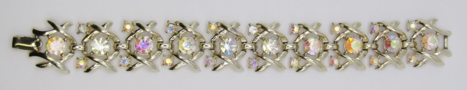 7.5″ GOLD TONES WITH AURORA BOREALIS STONES. STAMPED ON BACK. NO MISSING STONES!