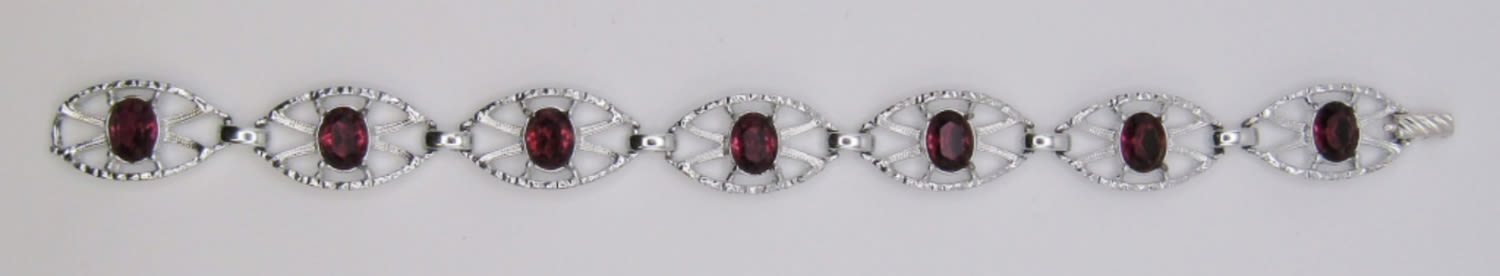7.5″ SARAH COVENTRY HAMMERED CHAINLINK FAUX AMETHYST BRACELET. SIGNED ON BACK OF CLASP.