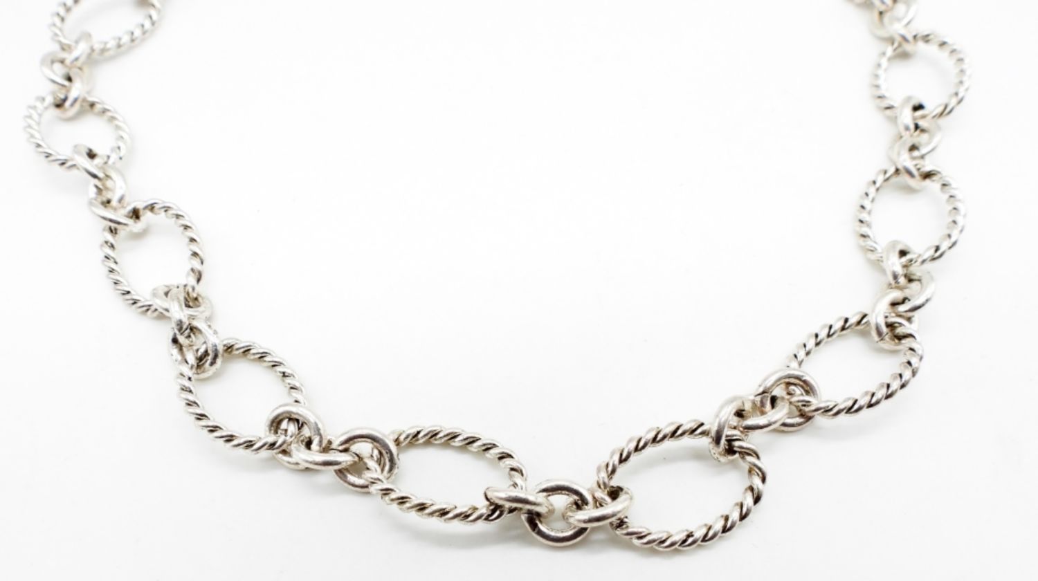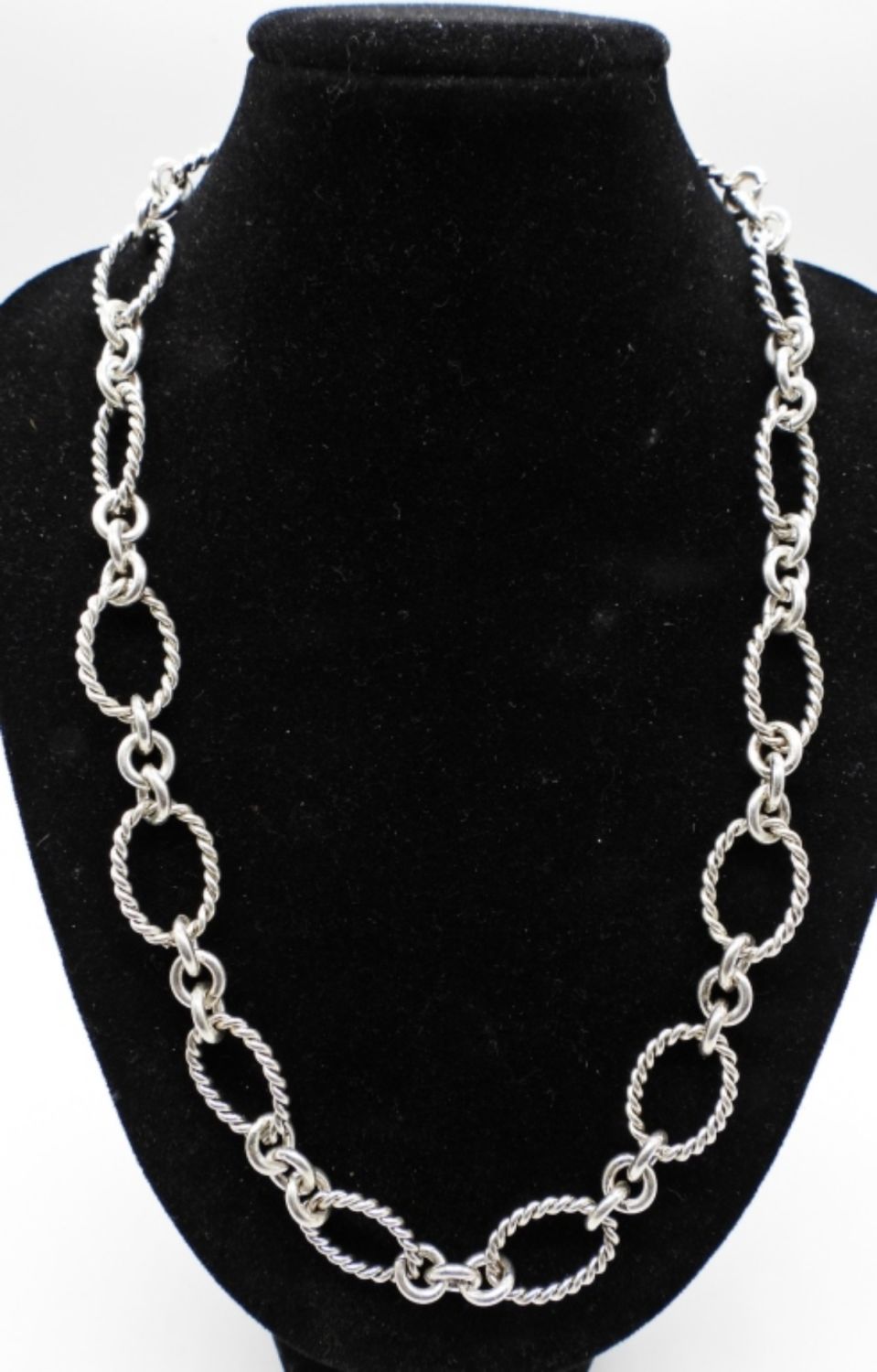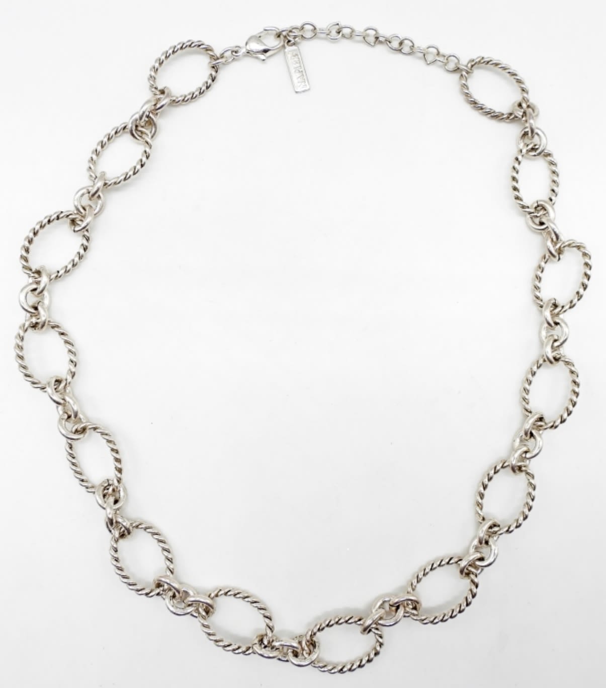 16″ WITH TWISTED LOOPS. SIGNED ON HANGTAG.