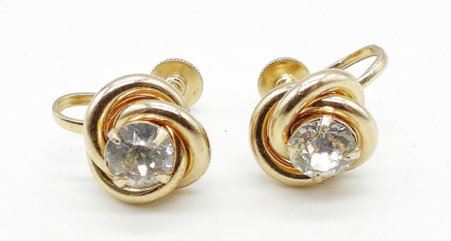 GOLD TONE WITH CLEAR GEMS. SIGNED ON BACKING