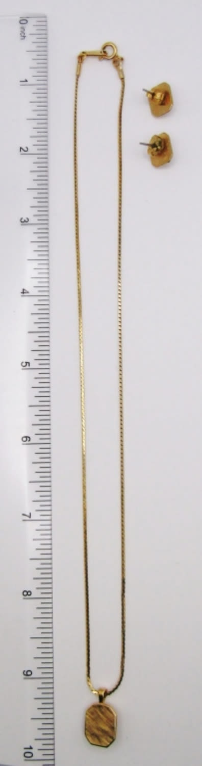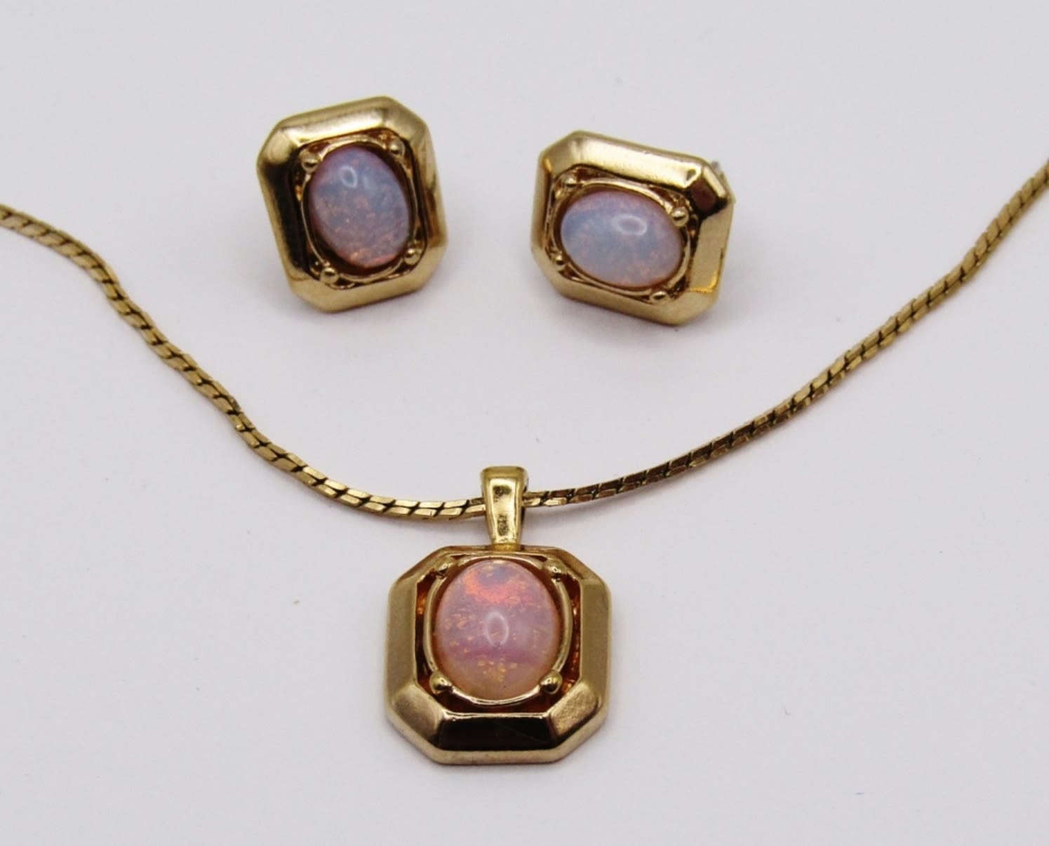 VINTAGE FAUX OPALS IN RECTANGULAR SETTINGS PIERCED STUD EARRINGS & 18IN NECKLACE