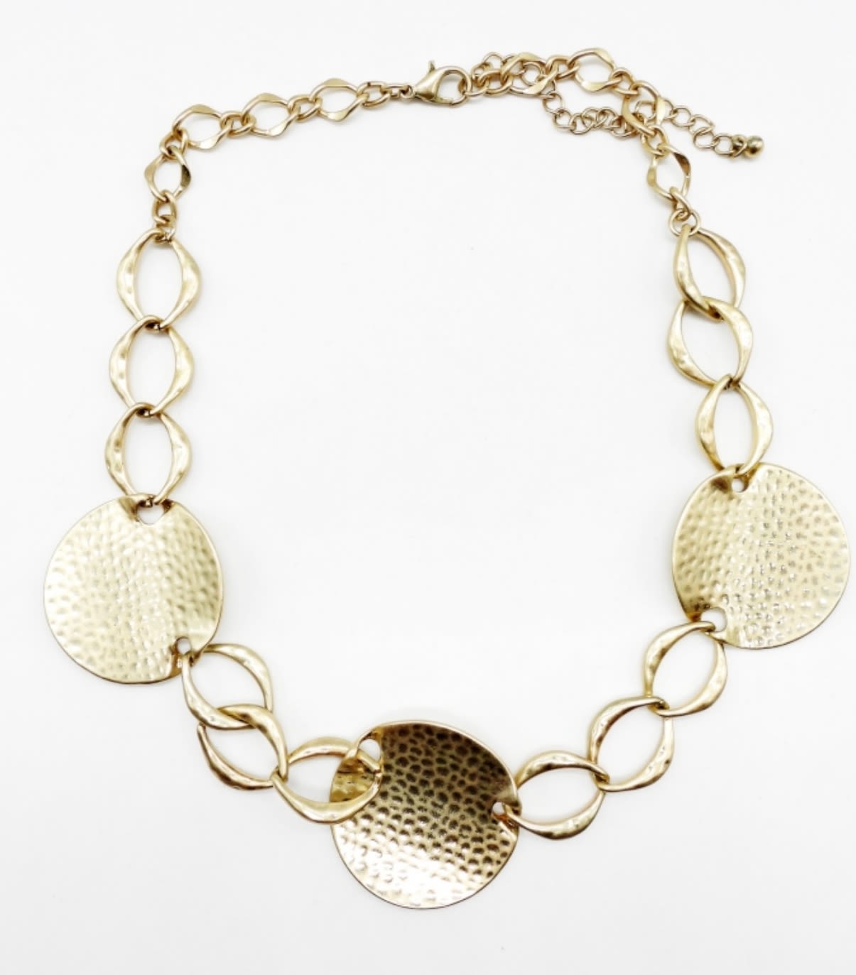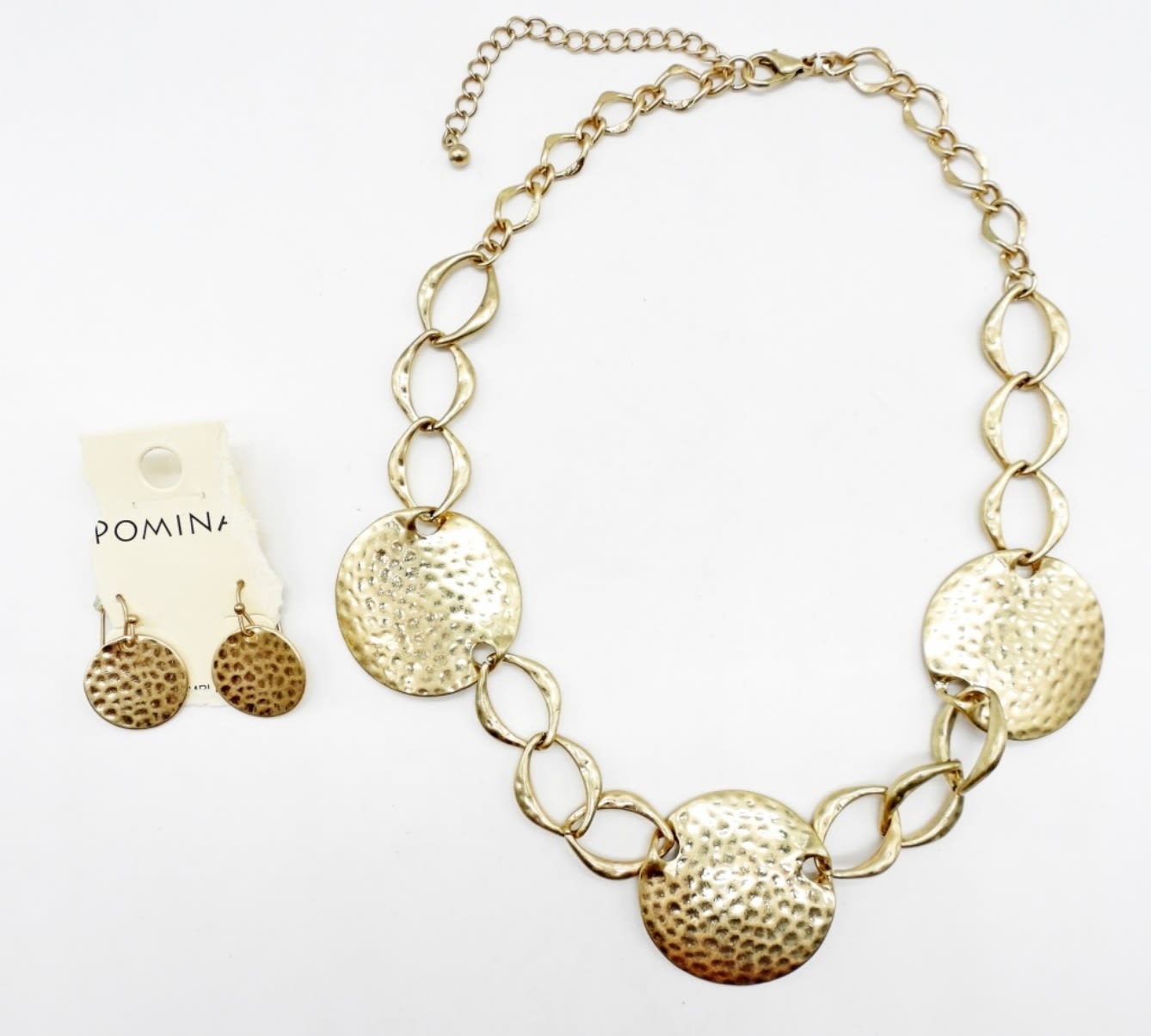 GOLD TONE 16″ NECKLACE & PIERCED DANGLE EARRINGS. EARRINGS ON TORN RETAIL PACK.