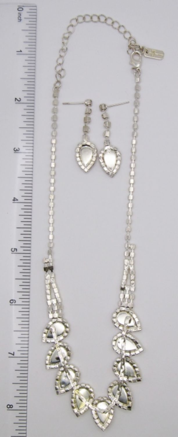 18″ NECKLACE & PIERCED DANGLE EARRINGS MISSING BACKINGS.