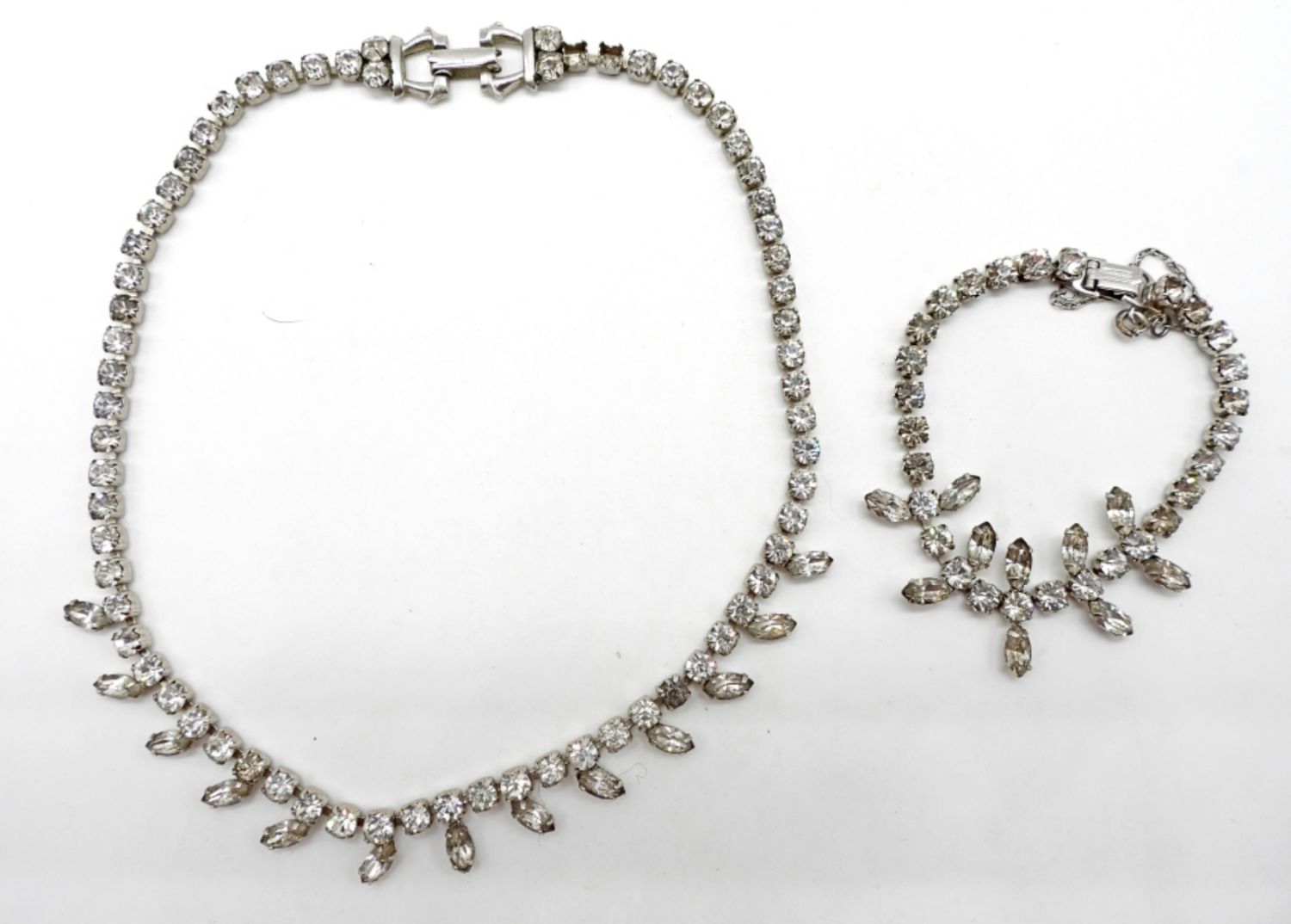 2″ DIAMETER BRACELET SIGNED “GARNE JEWELRY” NEAR CLASP & SIMILAR STYLE 15″ NECKLACE MISSING 2 STONES NEAR CLASP.