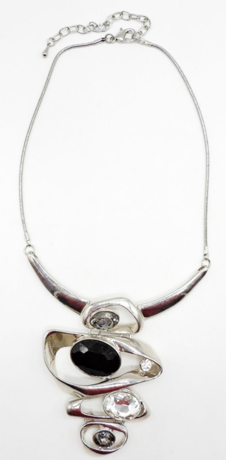 19″ WITH CLEAR, GREY & BLACK GEMS.