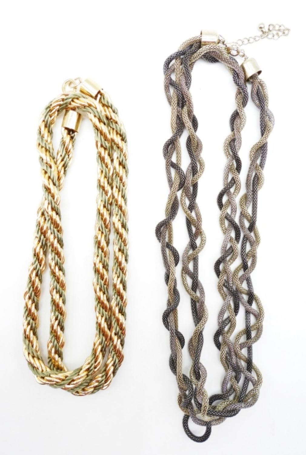 GOLD TONE (1) 28″ WITH GREEN & (1) 36″ WITH BRONZE & COPPER TONES