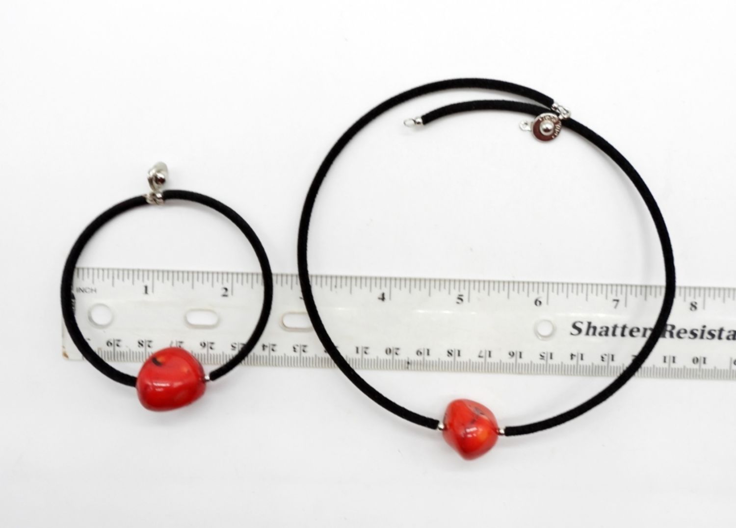 BLACK VELVET CORDS 16″ NECKLACE & 2.5″ DIAMETER BRACELET, & PIERCED DANGLE EARRINGS W/ FAUX PEARLS.