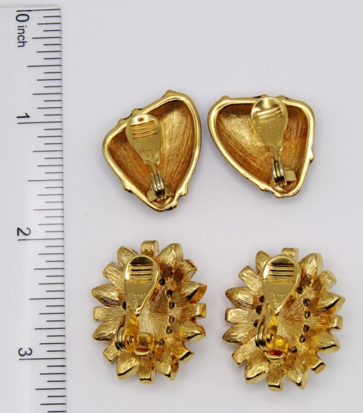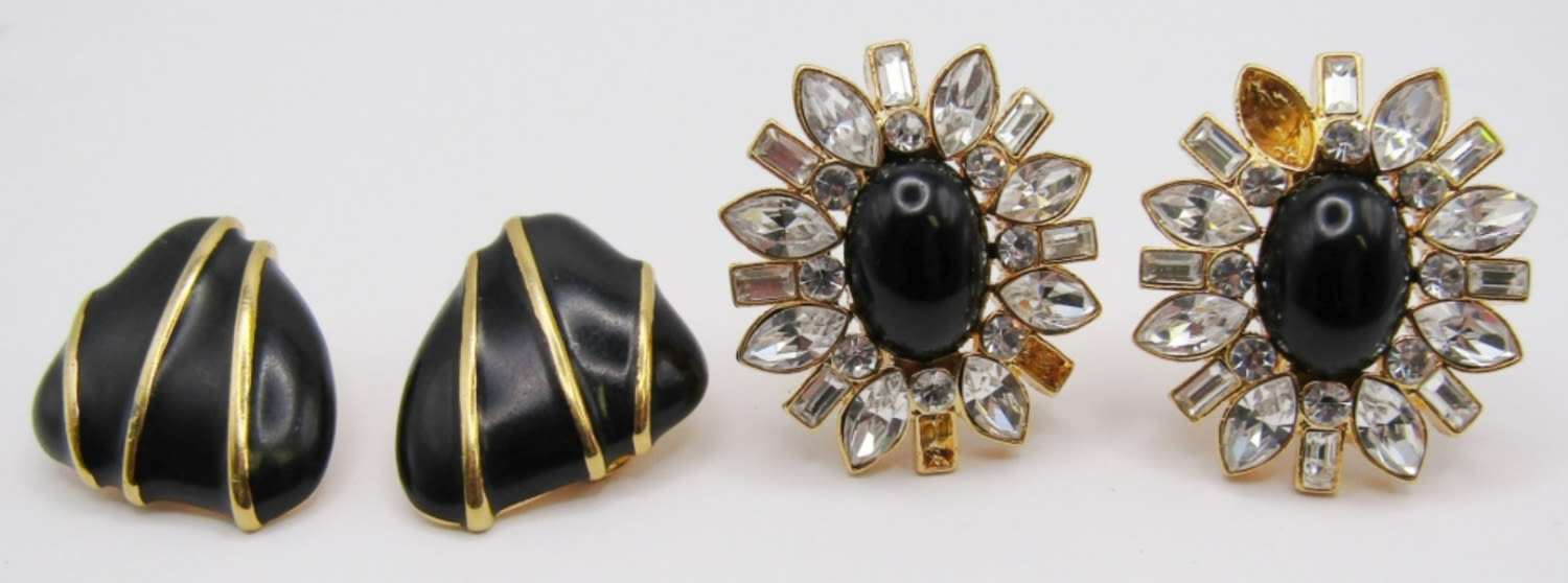 BOTH BLACK & GOLD THEME STAMPED ON BACK. 1 PAIR MISSING 3 SECONDARY STONES.