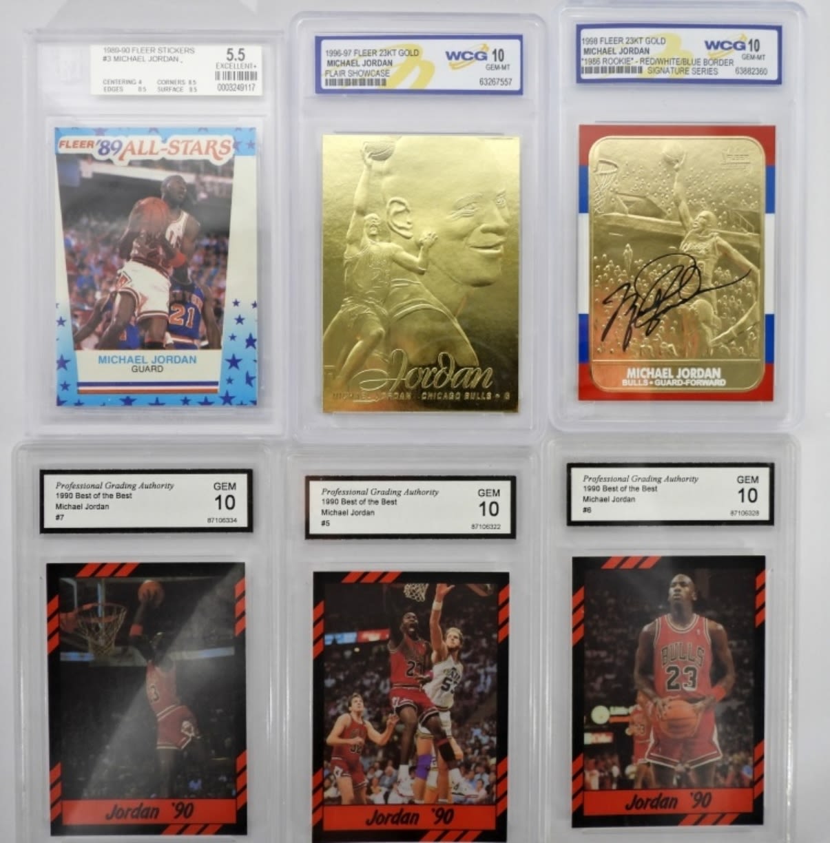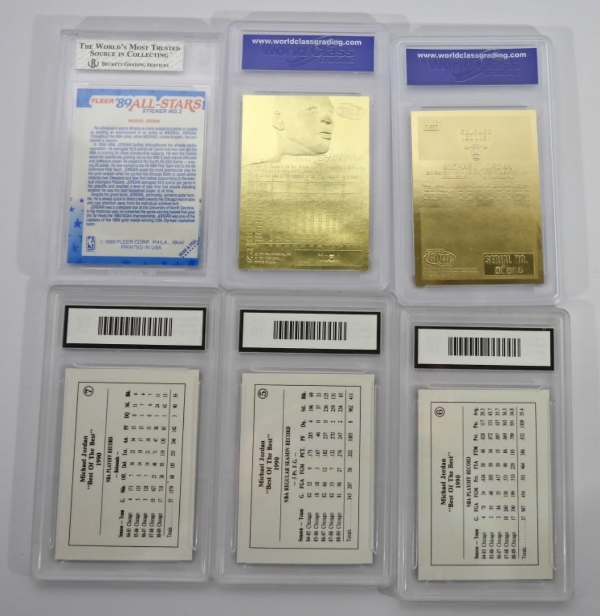 (2) 23kt GOLD, 1989-90 FLEER STICKER PSA 5.5 plus (3) 1990 BEST OF THE BEST