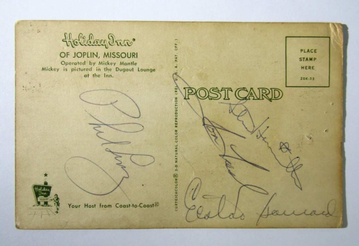 (4) AUTOGRAPHS on REVERSE of POSTCARD – PHIL LINZ, TOM TRESH, STEVE HAMILTON & ESTEO SAWARD? – NO COA
