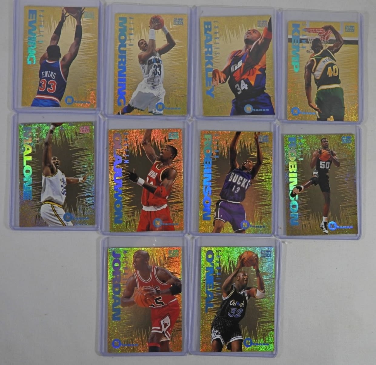 MICHAEL JORDAN, SHAQ, BARKLEY, KEMP, MALONE, OLAJUWON, ROBINSON, DAVID, ROBINSON, EWING, MOURNING – NM/MT GOLD FOIL SET in TOP LOAD HOLDERS