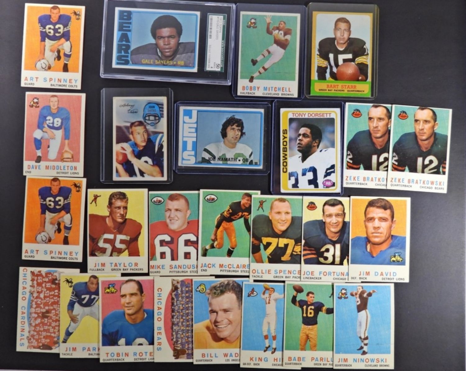 DORSETT ROOKIE, BART STARR, SAYERS plus (20) 1959 TOPPS FOOTBALL MIXED CARD LOT with BOBBY MITCHELL ROOKIE