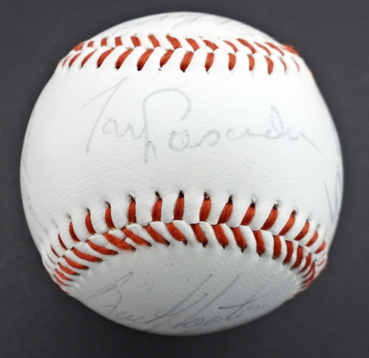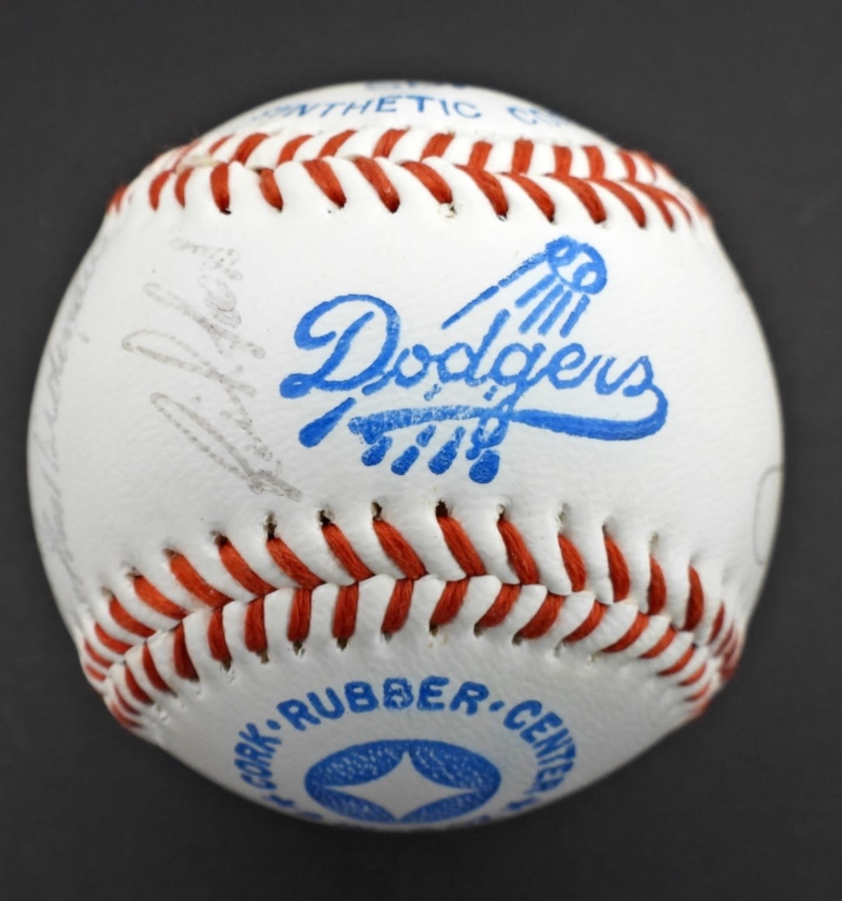 TOM LASORDA on SWEET SPOT plus (17) OTHER DODGERS SIGNATURES UNIDENTIFIED – NO COA