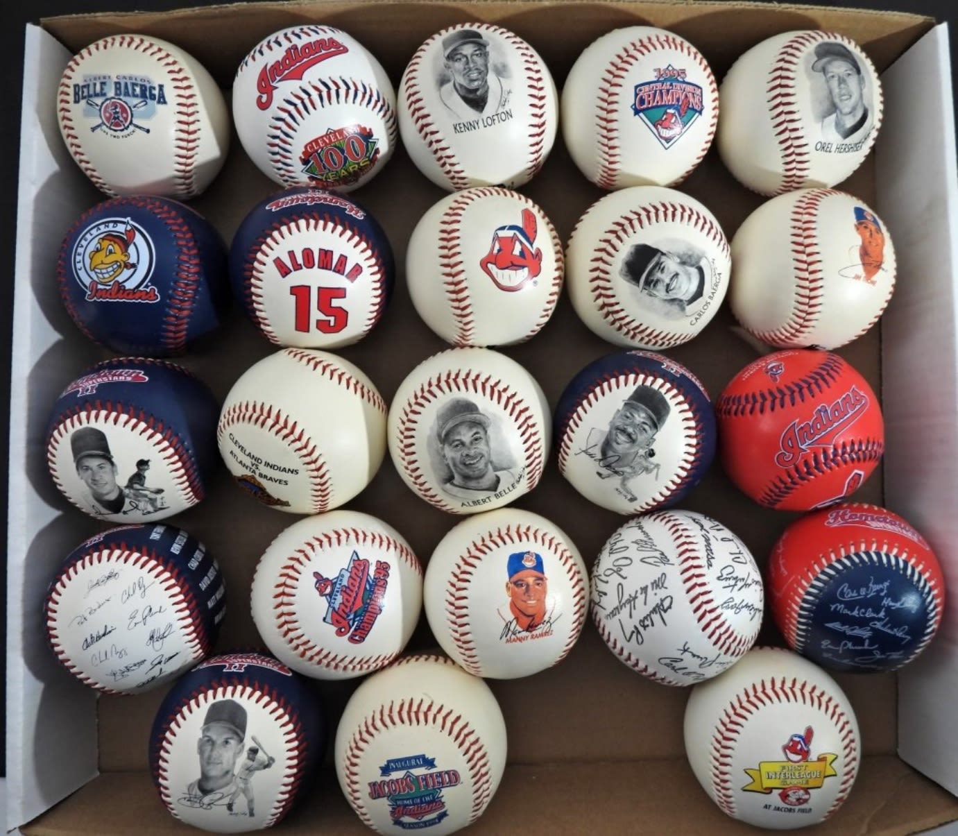 LARGE LOT of COMMEMORATIVE CLEVELAND INDIANS BALLS – FACSIMILE AUTOGRAPHS & PHOTO BALLS