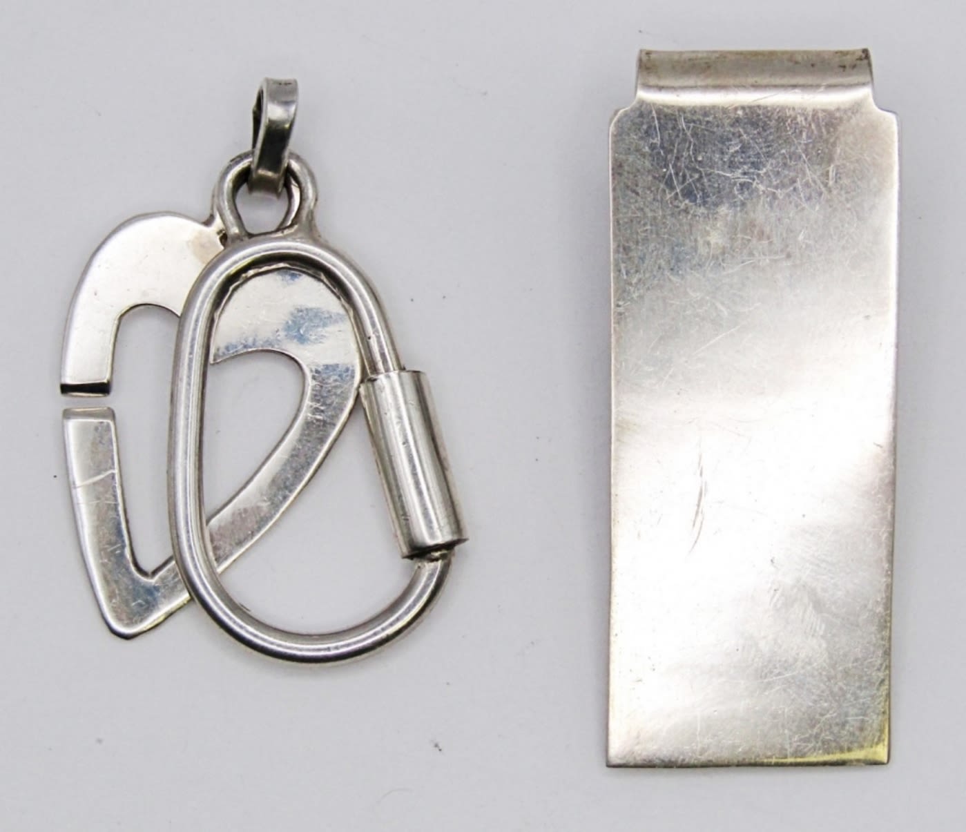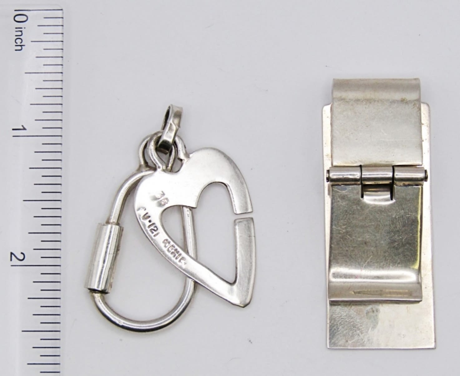 21.7DWT, LITTLE OVER 2IN LONG MONEY CLIP, STAMEP 925, 3IN LONG HEART KEY CHAIN STAMPED,TV-121 MEXICO 925