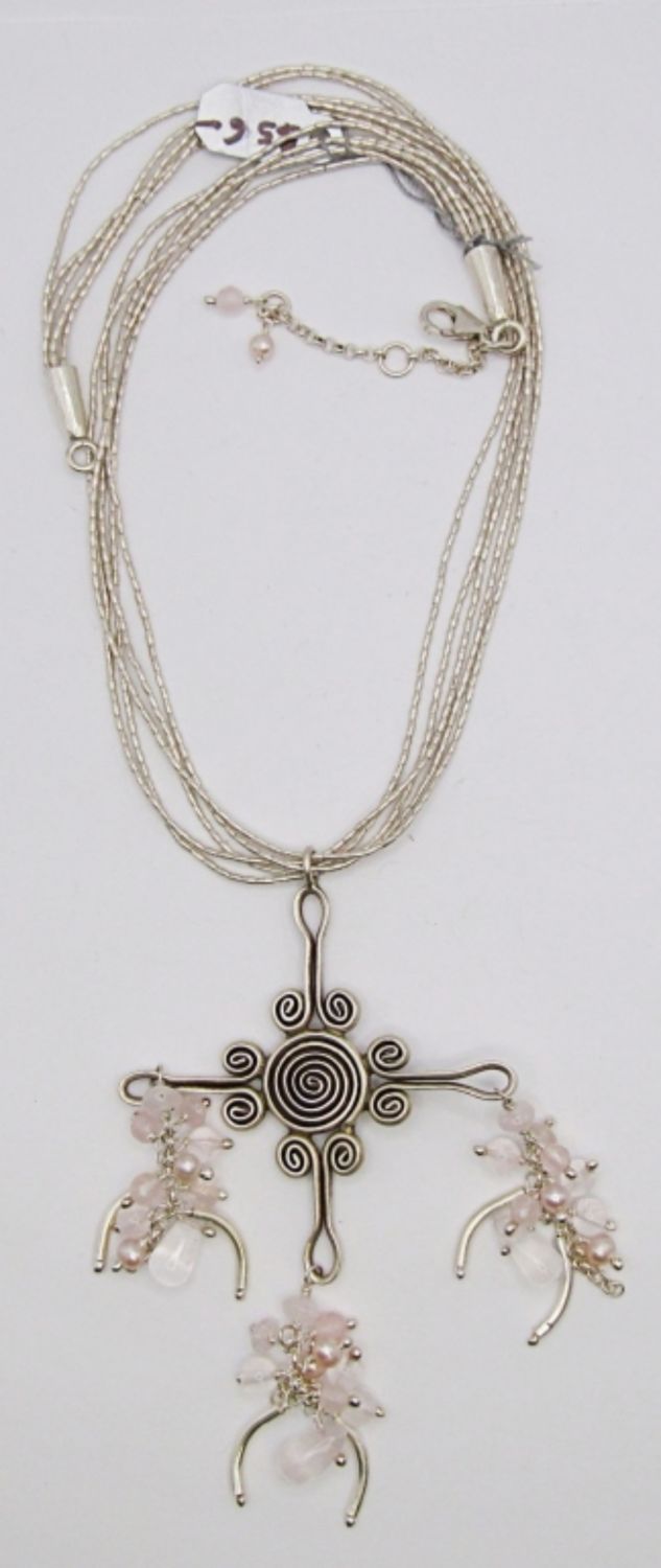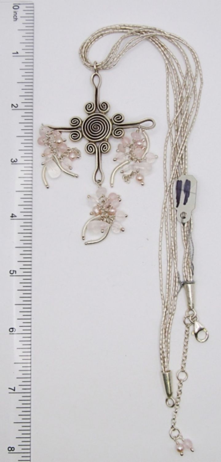 16.6DWT, 19IN LONG WITH PENDANT, STERLING CROSS WITH ROSE QUARTZ BEADS, LOBSTER CLASP STAMPED 925 ON THE CLASP