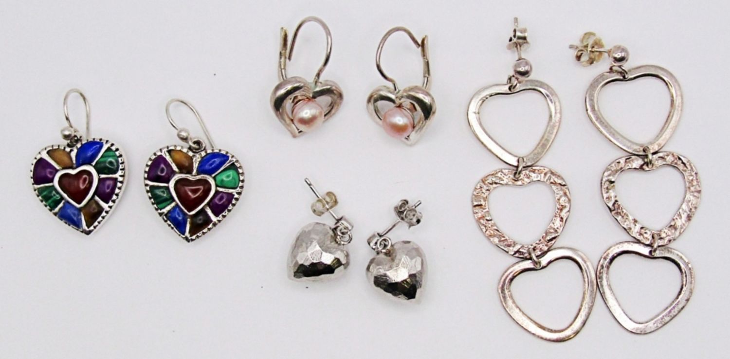 18DWT, 2-HUGGIE STYLE, 2- DANGLES, 2 OUT OF 4 STAMPED 925, PIERCED