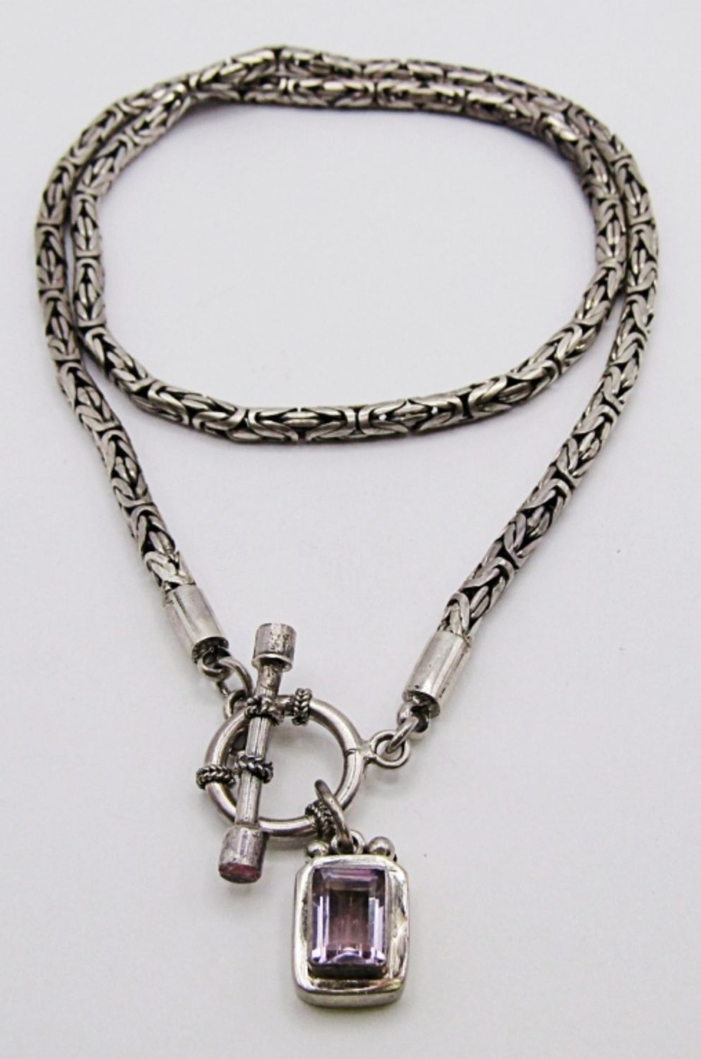 19DWT, 18IN LONG , WITH TOGGLE CLASP, SMALL AMETHYST PENDANT, STAMPED 925
