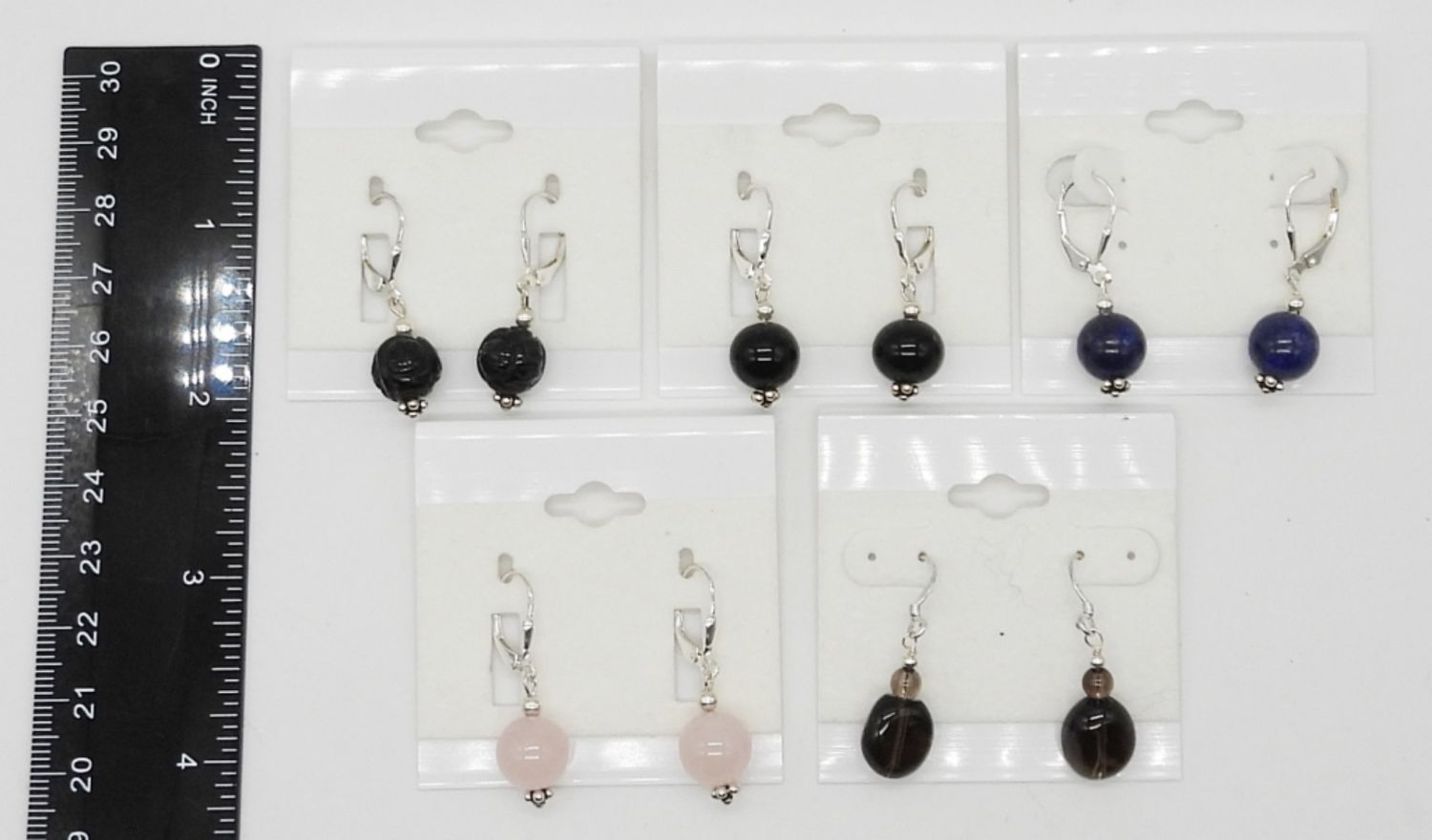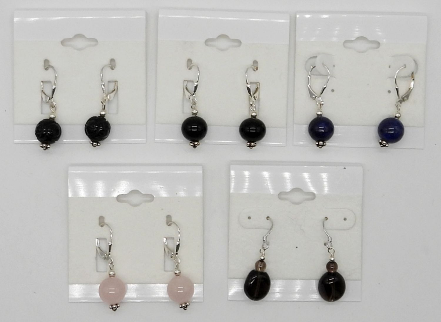 (5) PAIRS STERLING DANGLY EARRINGS WITH ONYX & NATURAL STONES – ALL MARKED 925