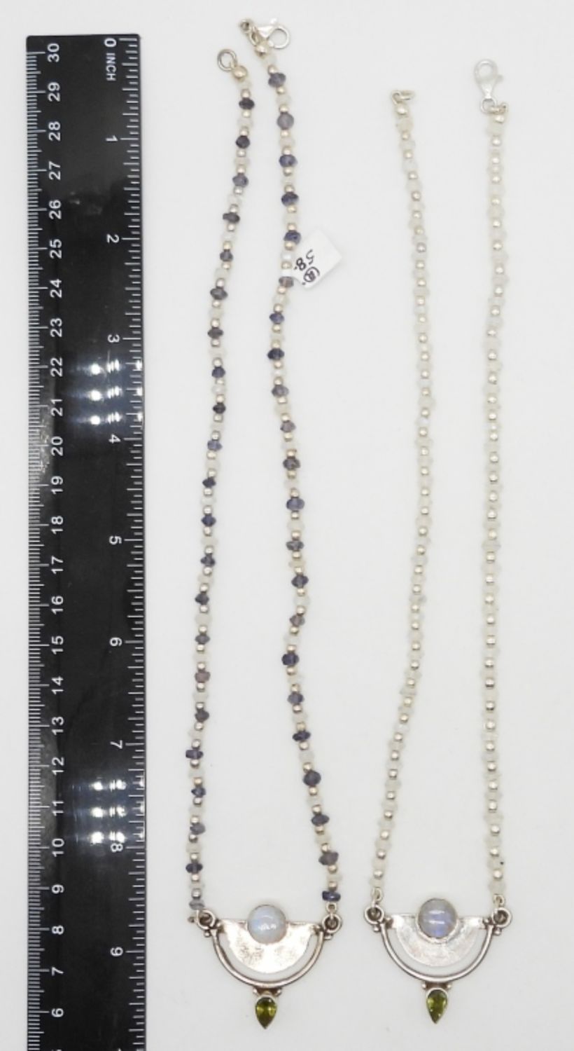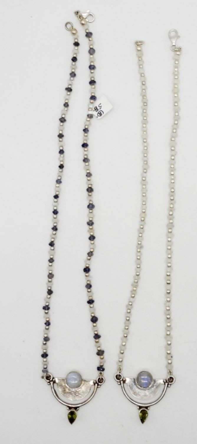 18″ & 19″ STERLING SILVER NECKLACES WITH STERLING PENDANTS & NATURAL STONES – MARKED 925