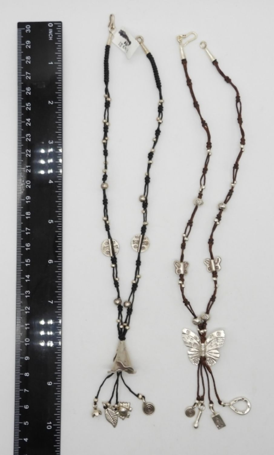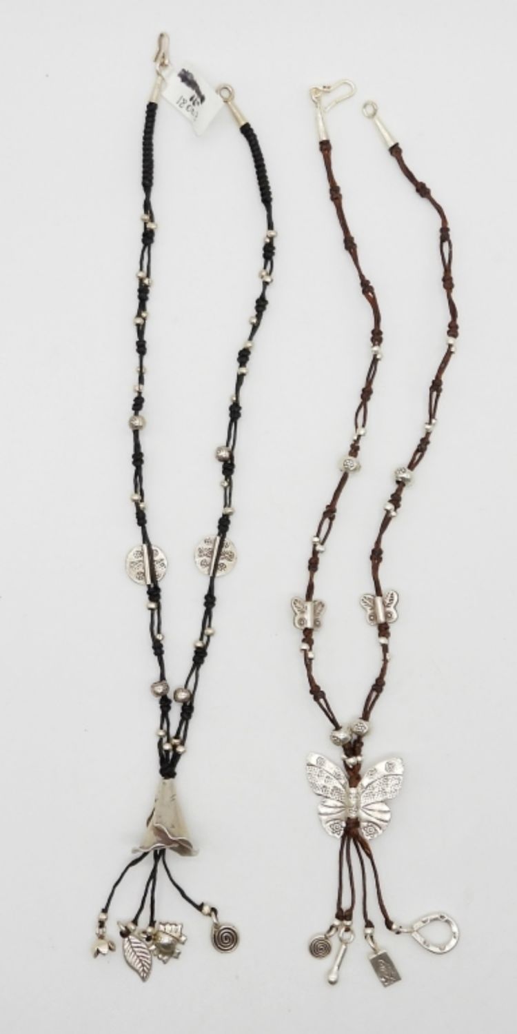 LEATHER & STERLING SILVER CHOKERS WITH BUTTERFLIES & FLOWERS – MARKED 925