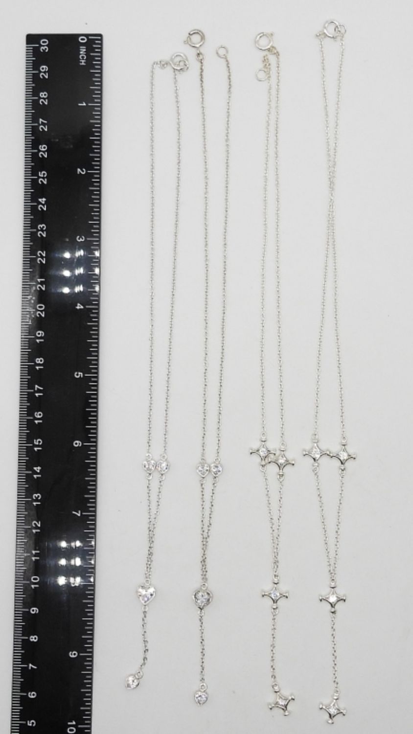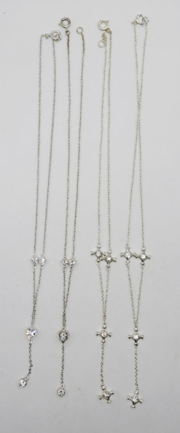 STERLING SILVER CHAINS WITH HEART / STAR CHARMS & CLEAR GEMSTONES; 10.5 DWT; MARKED 925