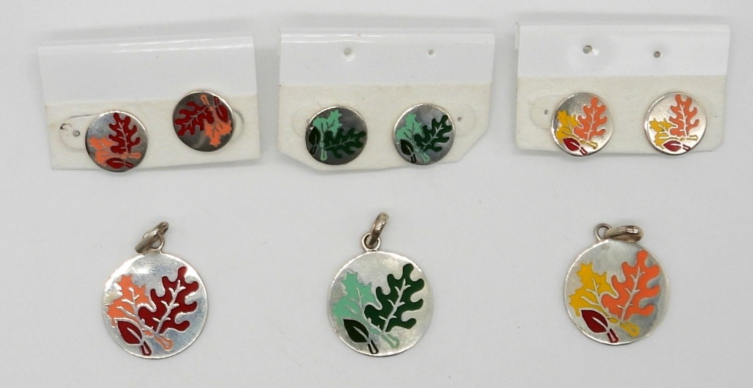 (3) PAIRS OF STERLING EARRINGS WITH (3) MATCHING PENDANTS; LEAF DESIGNS; ALL MARKED MEXICO 925; 18 DWT