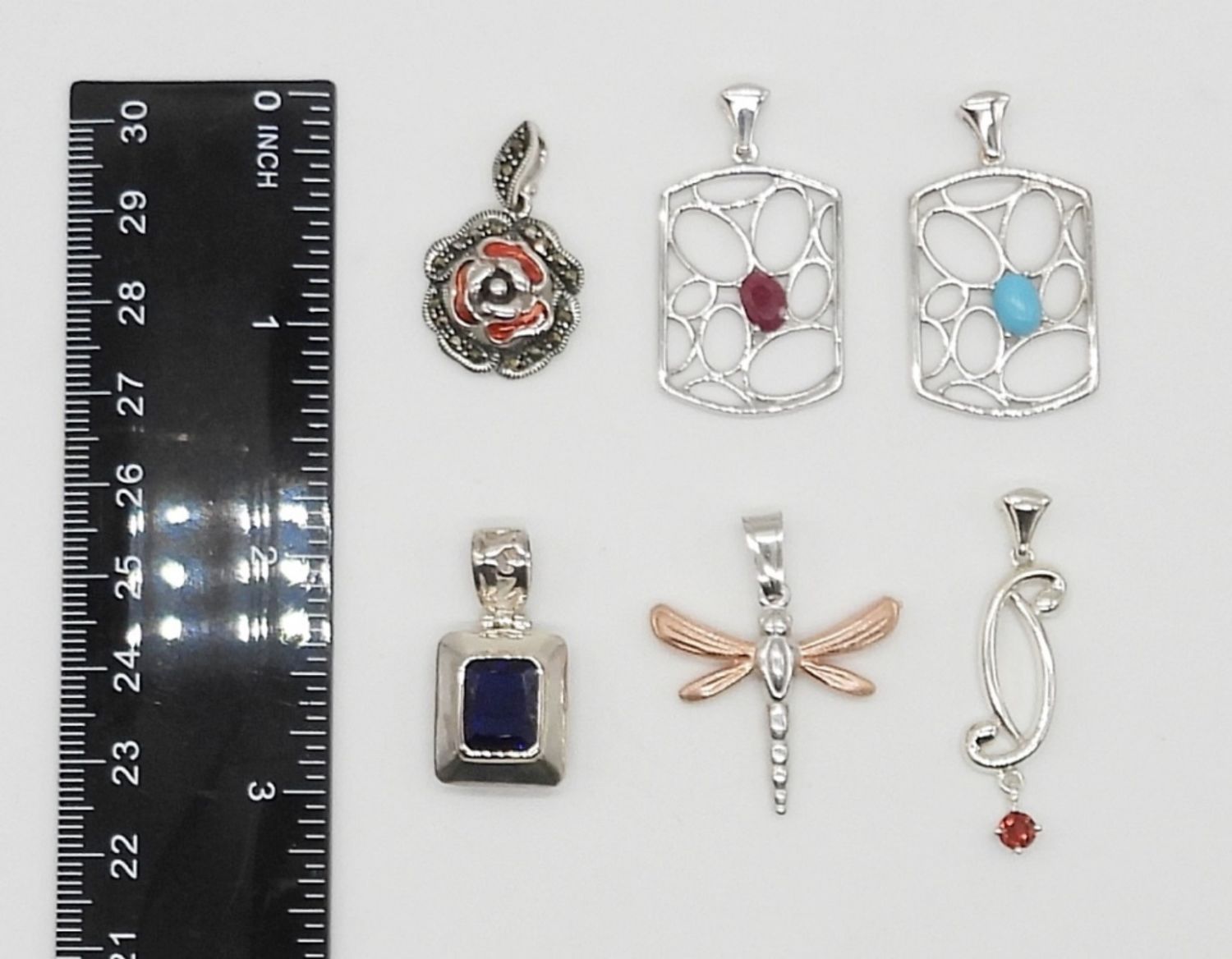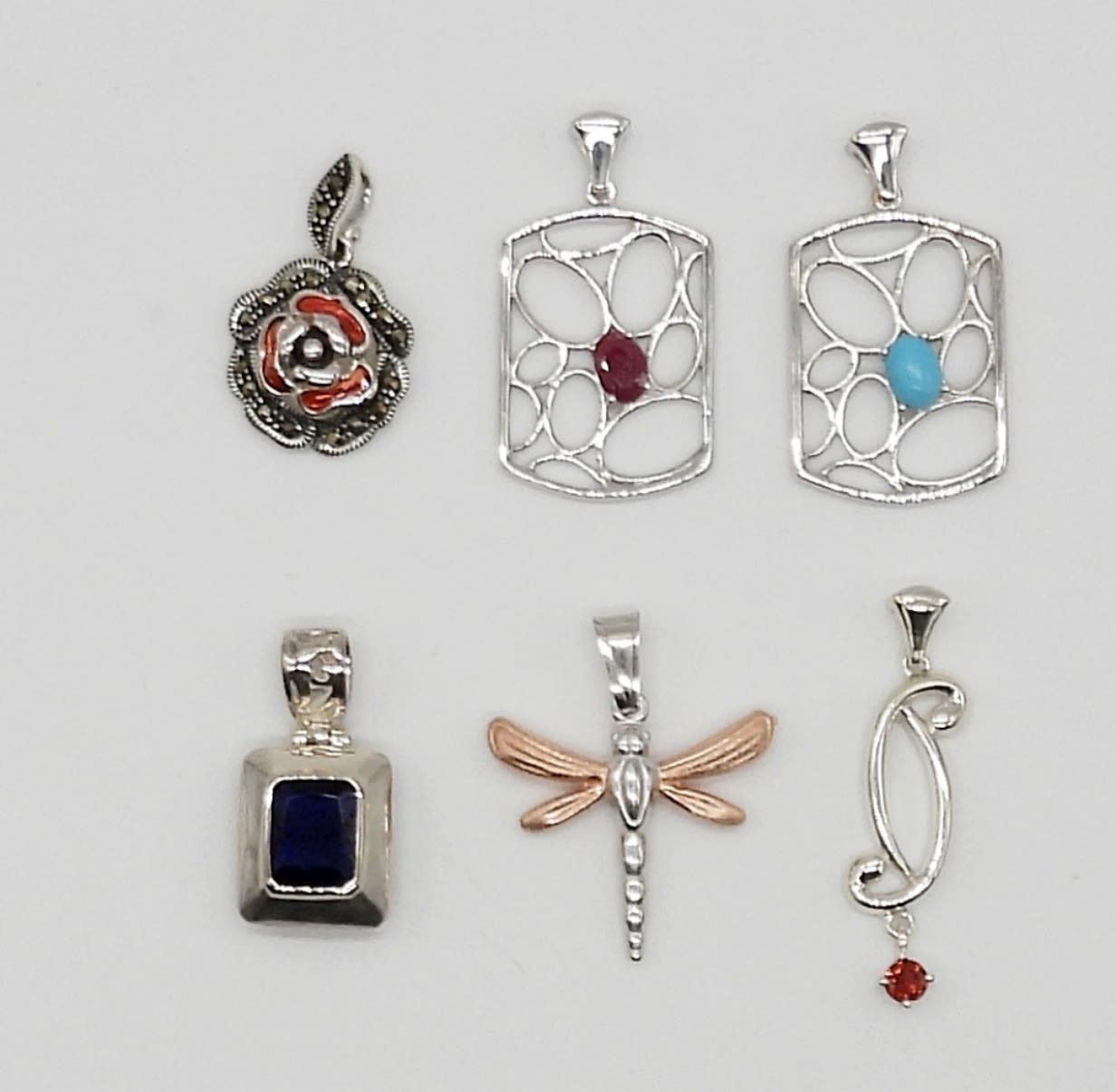STERLING SILVER PENDANTS WITH NATURAL STONES, GEMS & MARCASITE – 15 DWT – (4) MARKED 925)