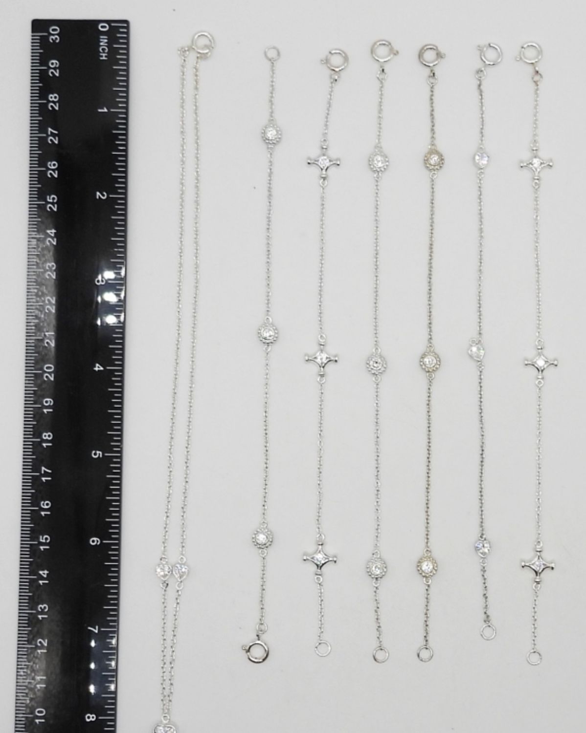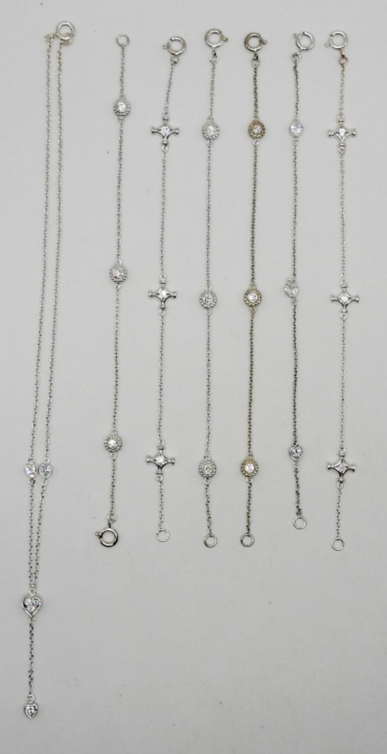 (6) 7″ STERLING SILVER CHAIN BRACELETS, MATCHING 16″ NECKLACE WITH HEART DESIGN; 11.5 DWT – MARKED 925