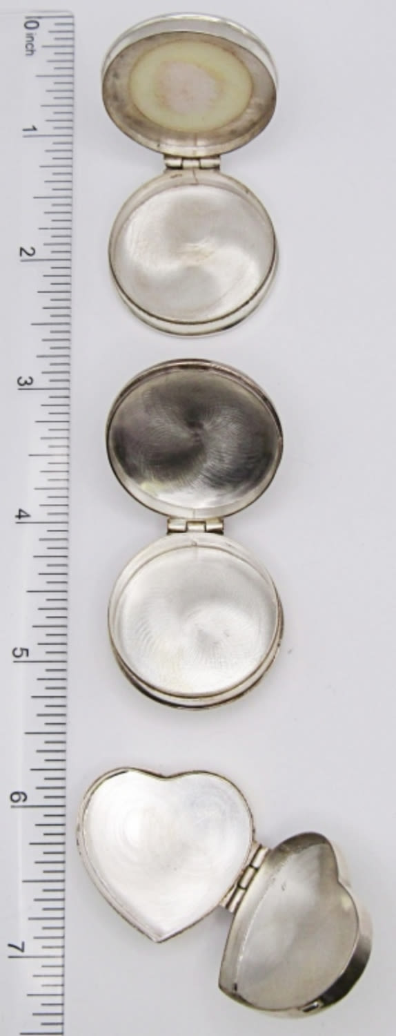27DWT, ALL LITTLE OVER 1IN LONG. 1-HEART, 1- ABALONE INLAY CIRCLE, 1- CIRCLE WITH MOVABLE TEDDY BEAR ON TOP, ALL STAMPED ON THE BOTTOM 925