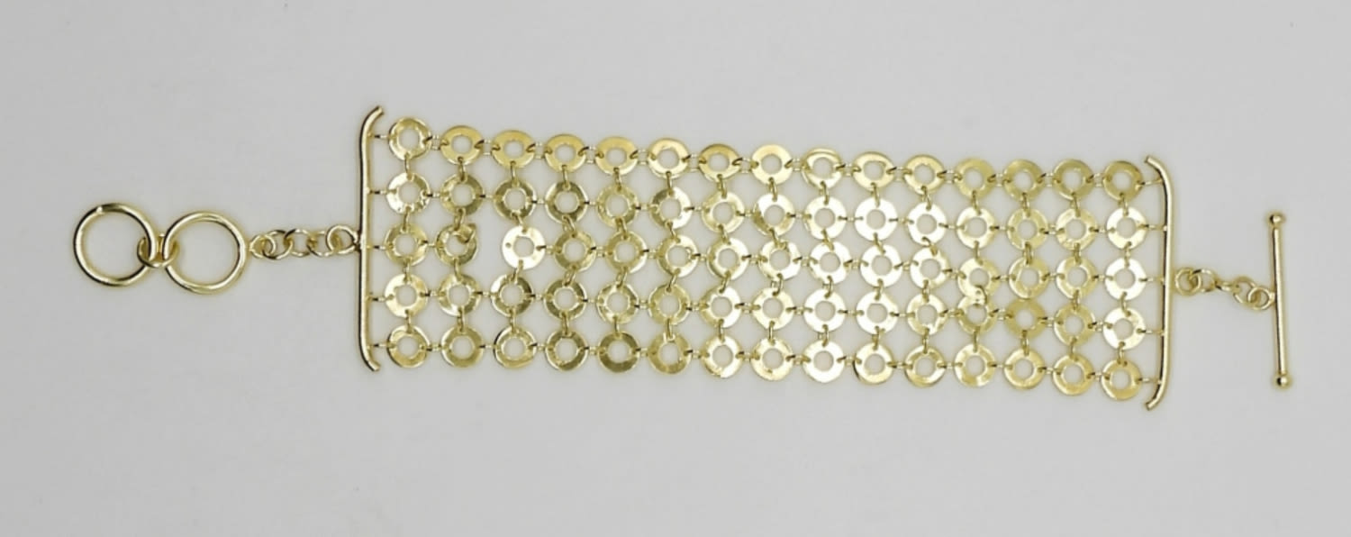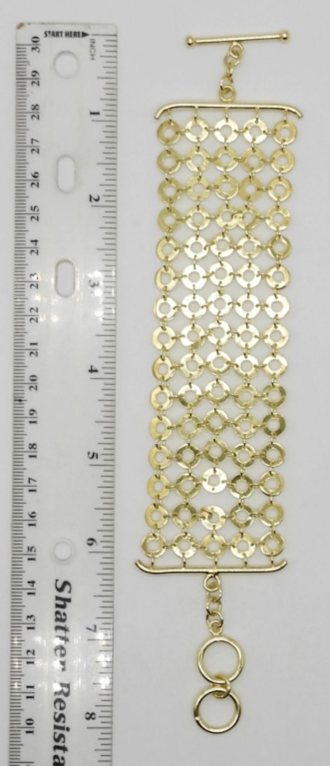 GOLD TONE STERLING CIRCLE PATTERN CHAIN BRACELET – MARKED 925 – 19.5 DWT