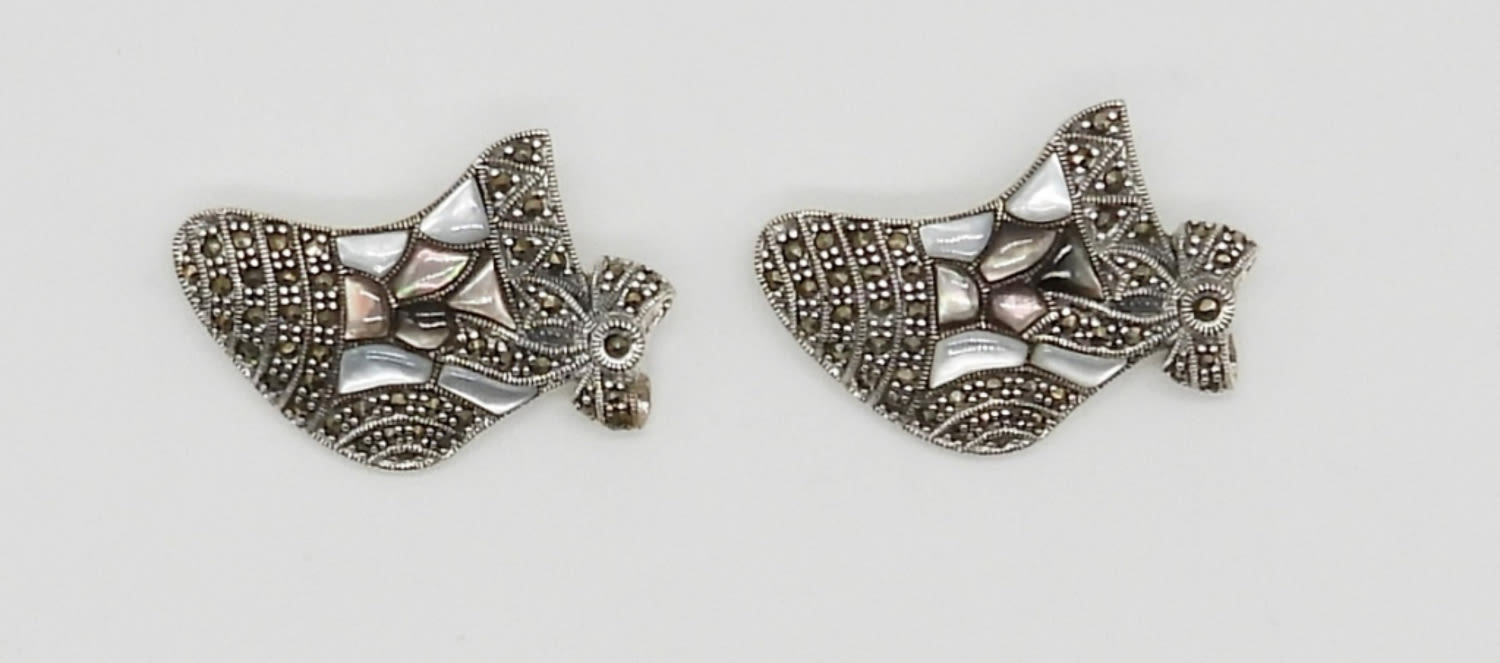 MATCHING BROOCHES STERLING SILVER WITH MARCASITE & NATURAL STONES – MARKED 925 – 19 DWT