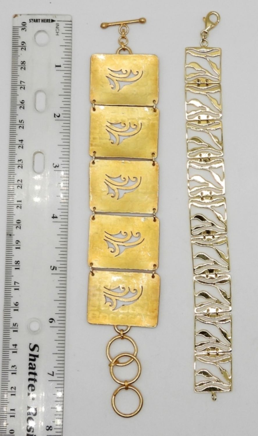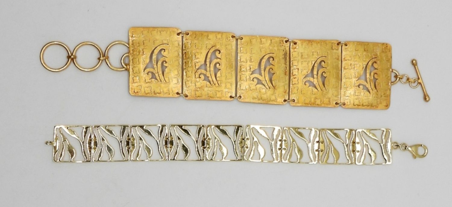STERLING GOLD TONE LINK STYLE BRACELETS, (1) MARKED 925; 31 DWT