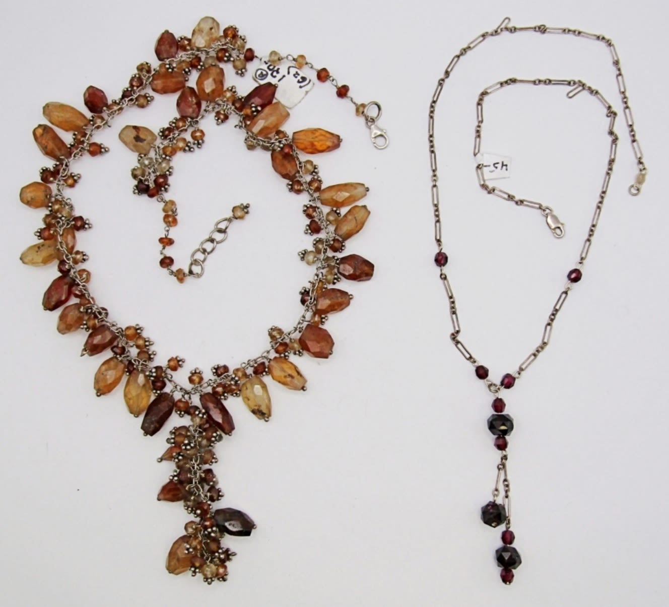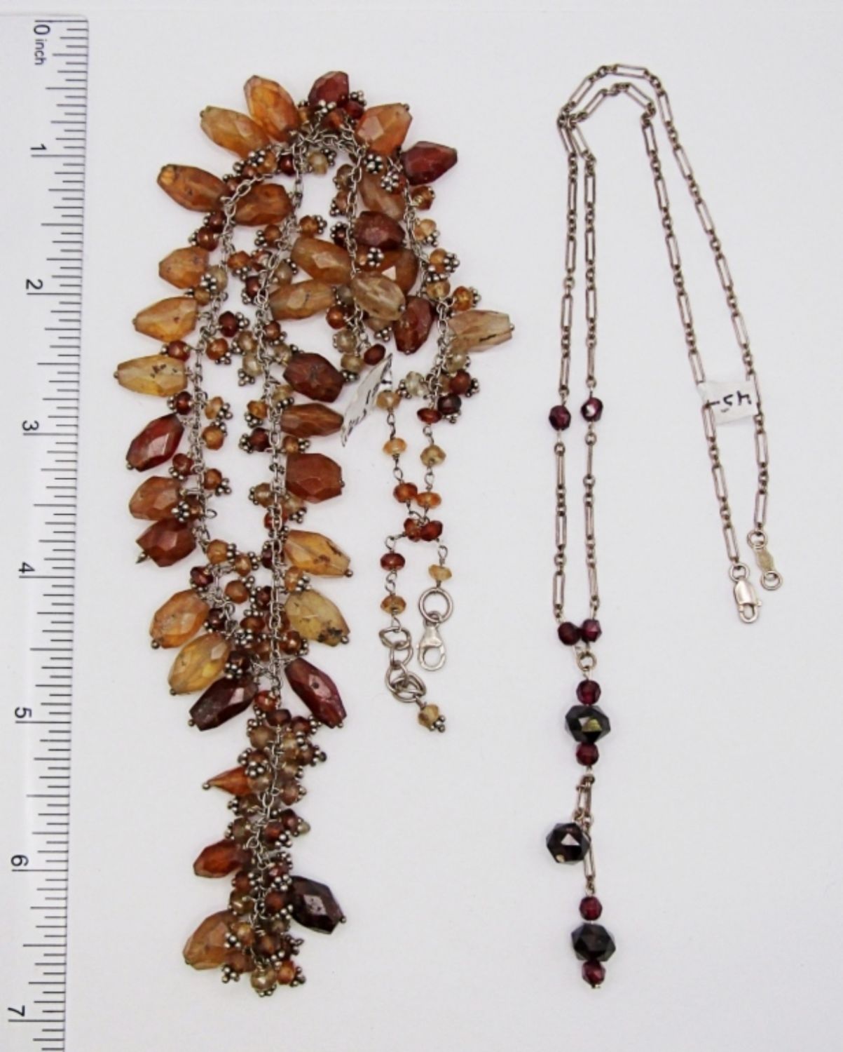 20DWT, 17IN LONG WITH RED BEADS AND STERLING CHAIN WITH LOBSTER CLASP, 18IN LONG WITH BROWN BEADING AND STERLING CHAIN. STAMPED 925 ON THE CLASP