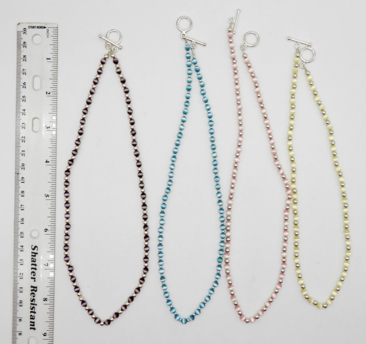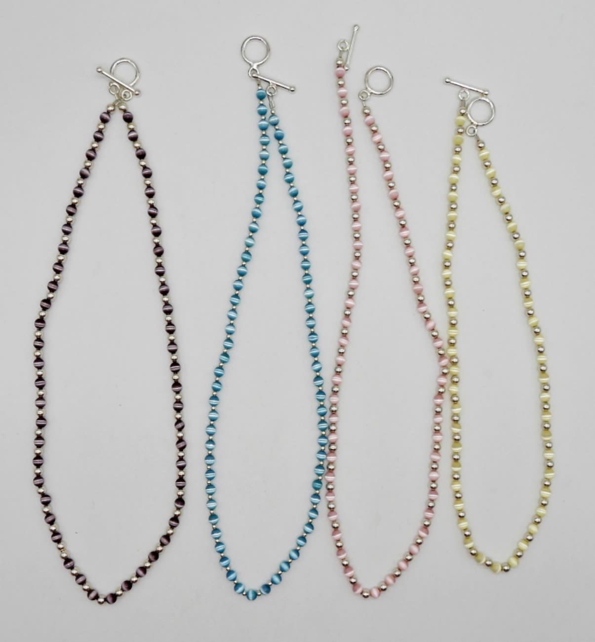 (1) 16″ & (3) 18″ STERLING BEADED NECKLACES PINK, BLUE, PURPLE & YELLOW