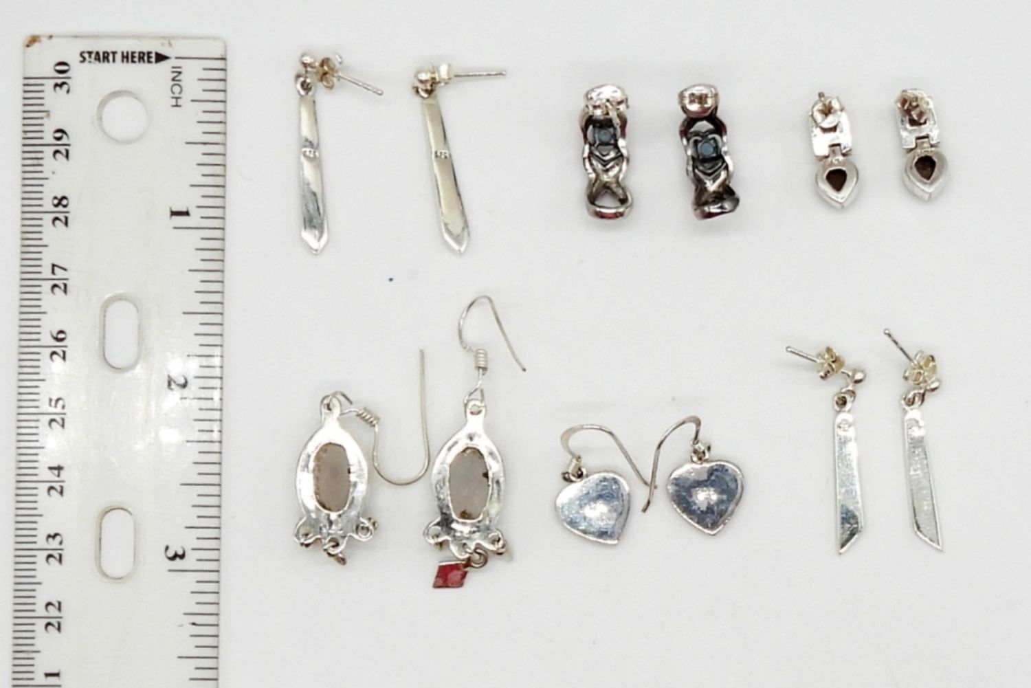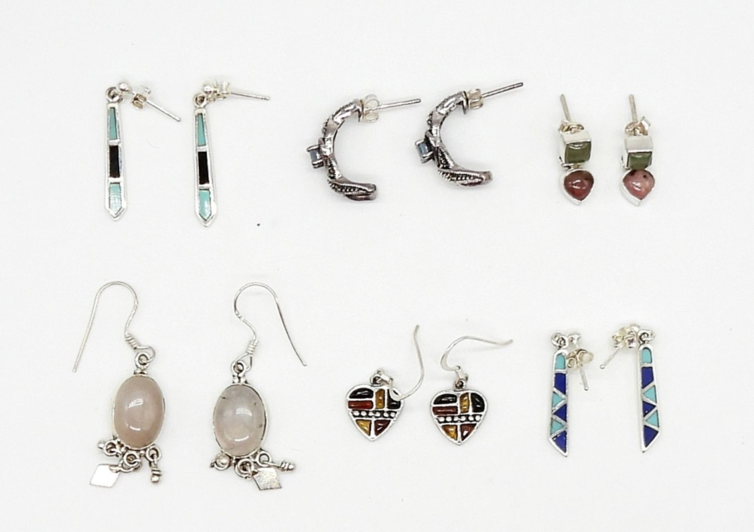 14.2 DWT, STERLING EARRINGS WITH MARCASITE, TURQUOISE & NATURAL STONES, ALL MARKED 925
