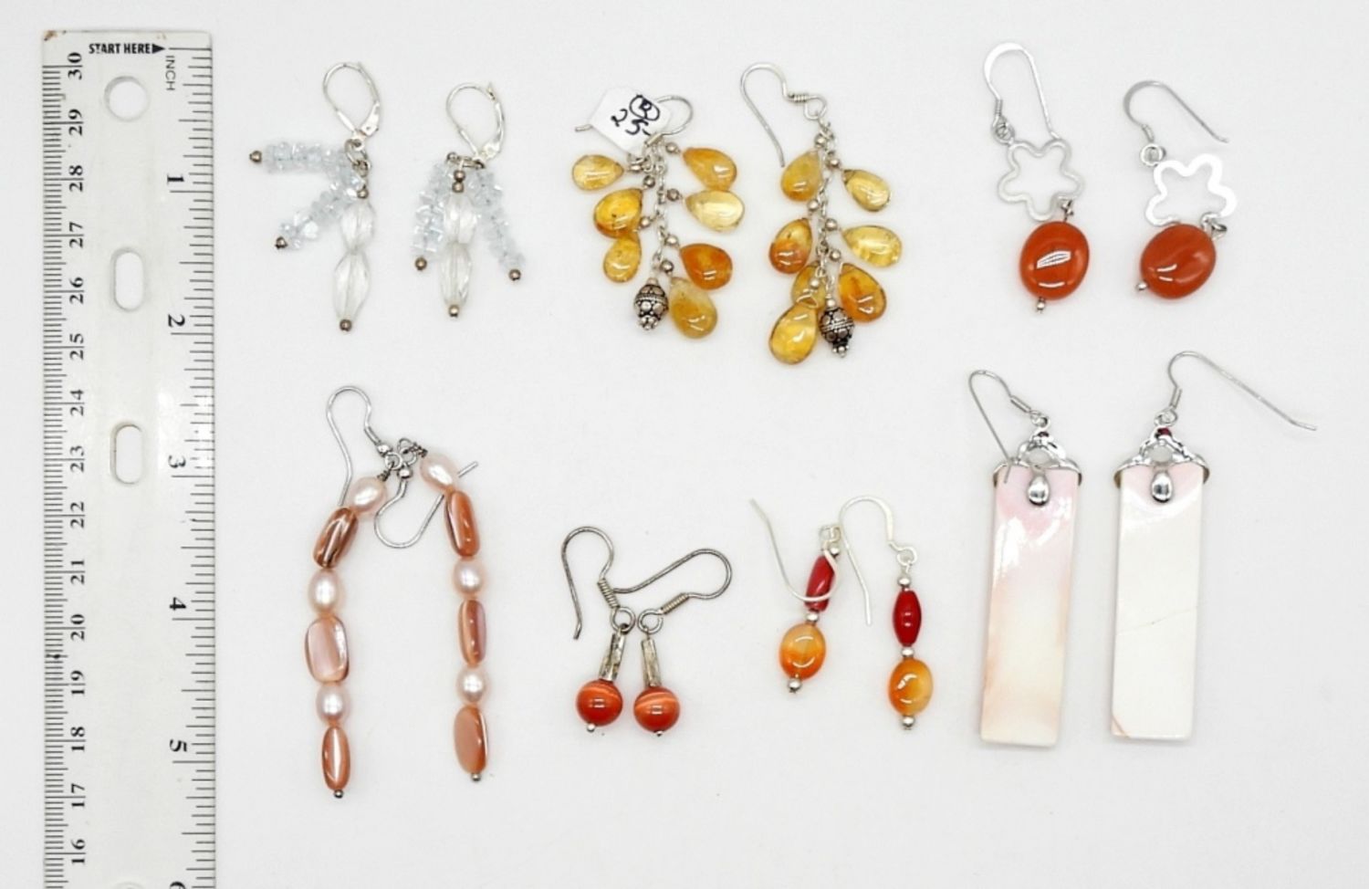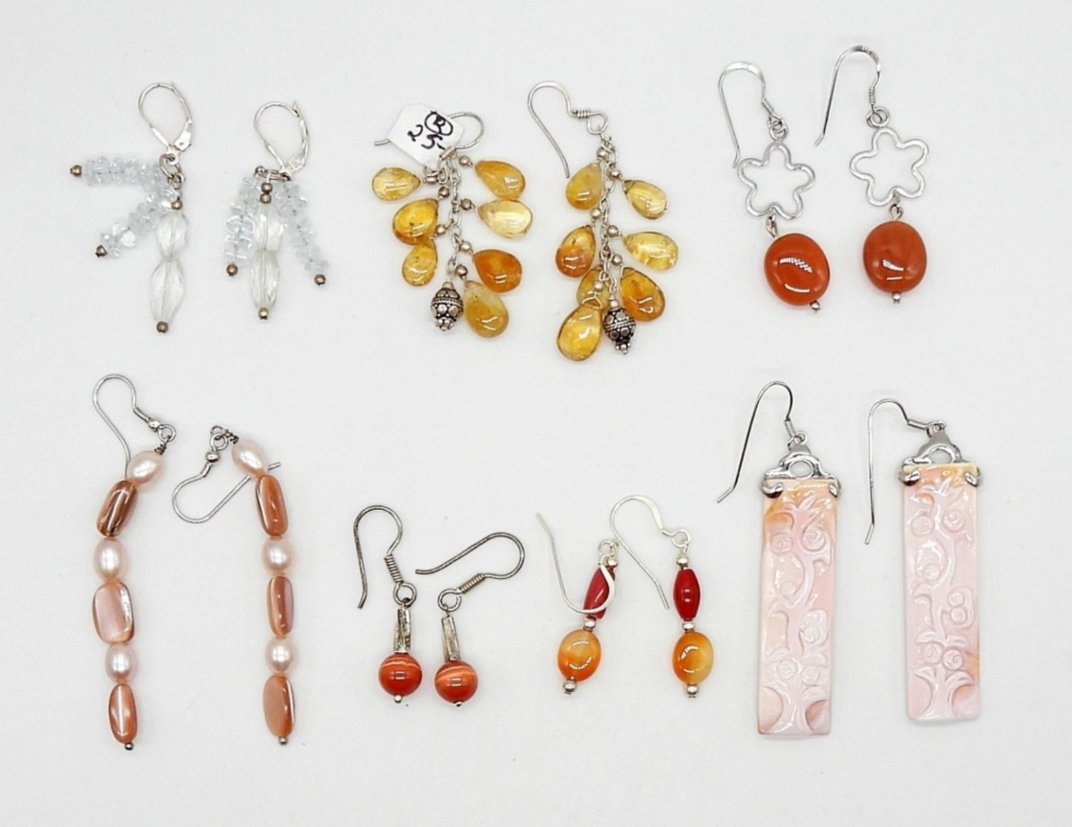 (7) PAIRS STERLING PIERCED DANGLY EARRINGS, (4) MARKED 925
