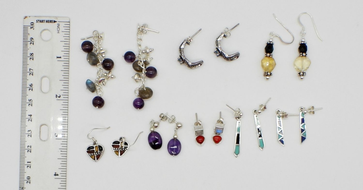 (8) PAIRS PIERCED EARRINGS WITH MARCASITE & NATURAL STONES – (6) MARKED 925