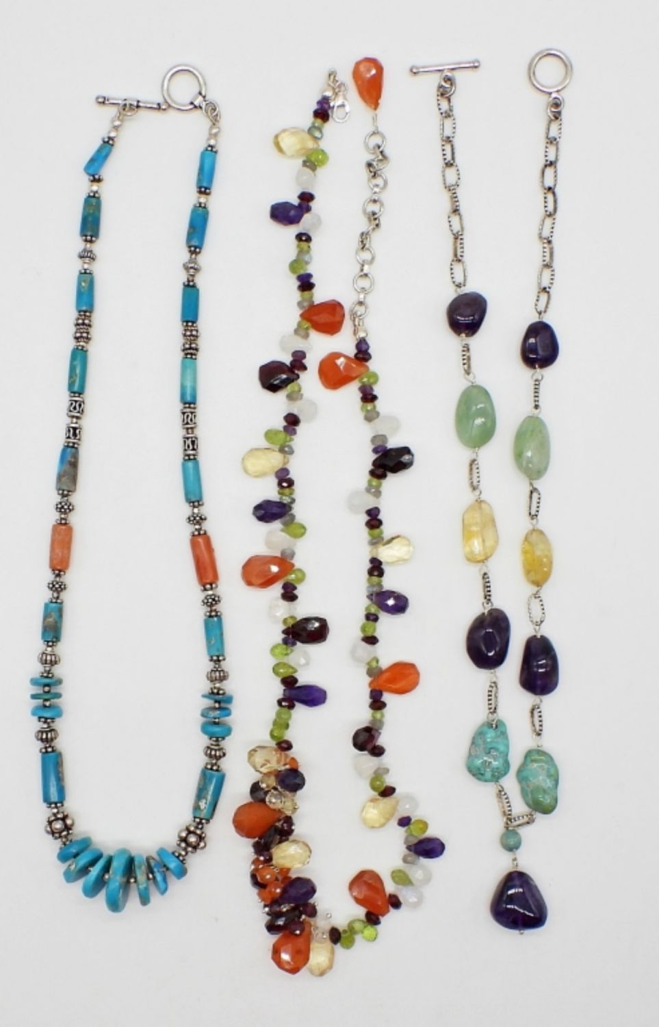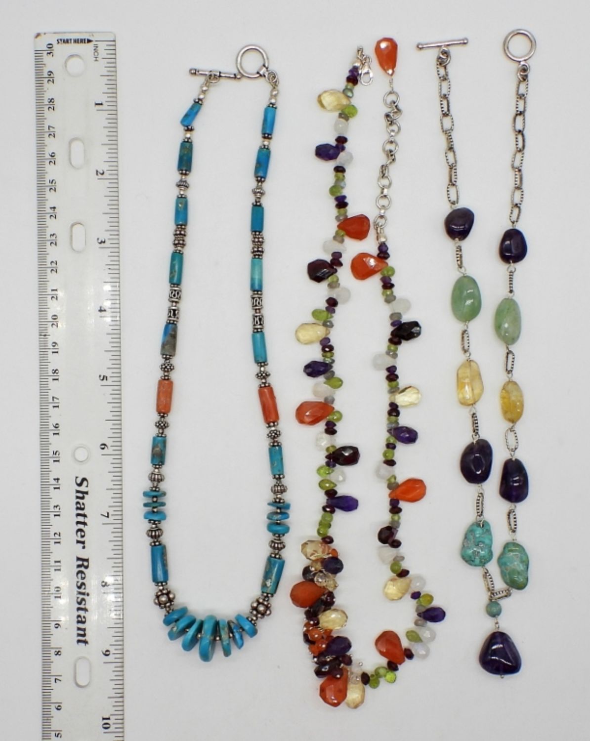 (3) 17″-19″ STERLING NECKLACES WITH LARGE TURQUOISE & MULTI COLOR NATURAL STONES/GEMSTONES – MARKED 925