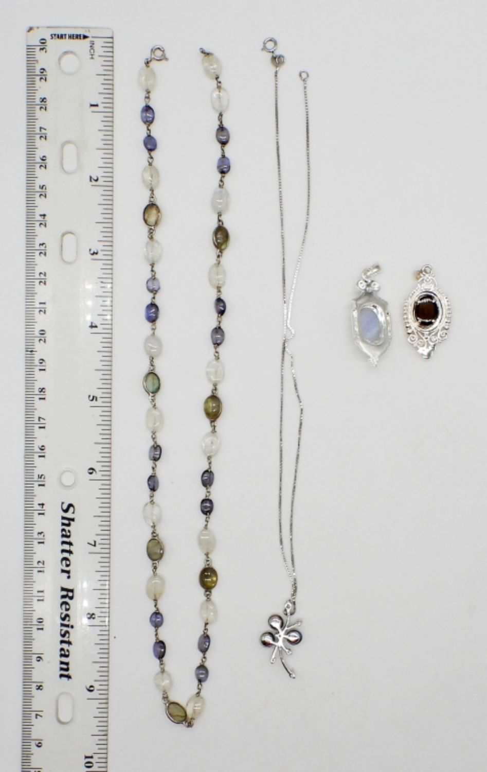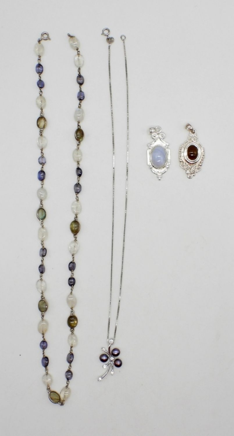 (2) STERLING PENDANTS WITH NATURAL STONES – MARKED 925; (2) STERLING NECKLACES