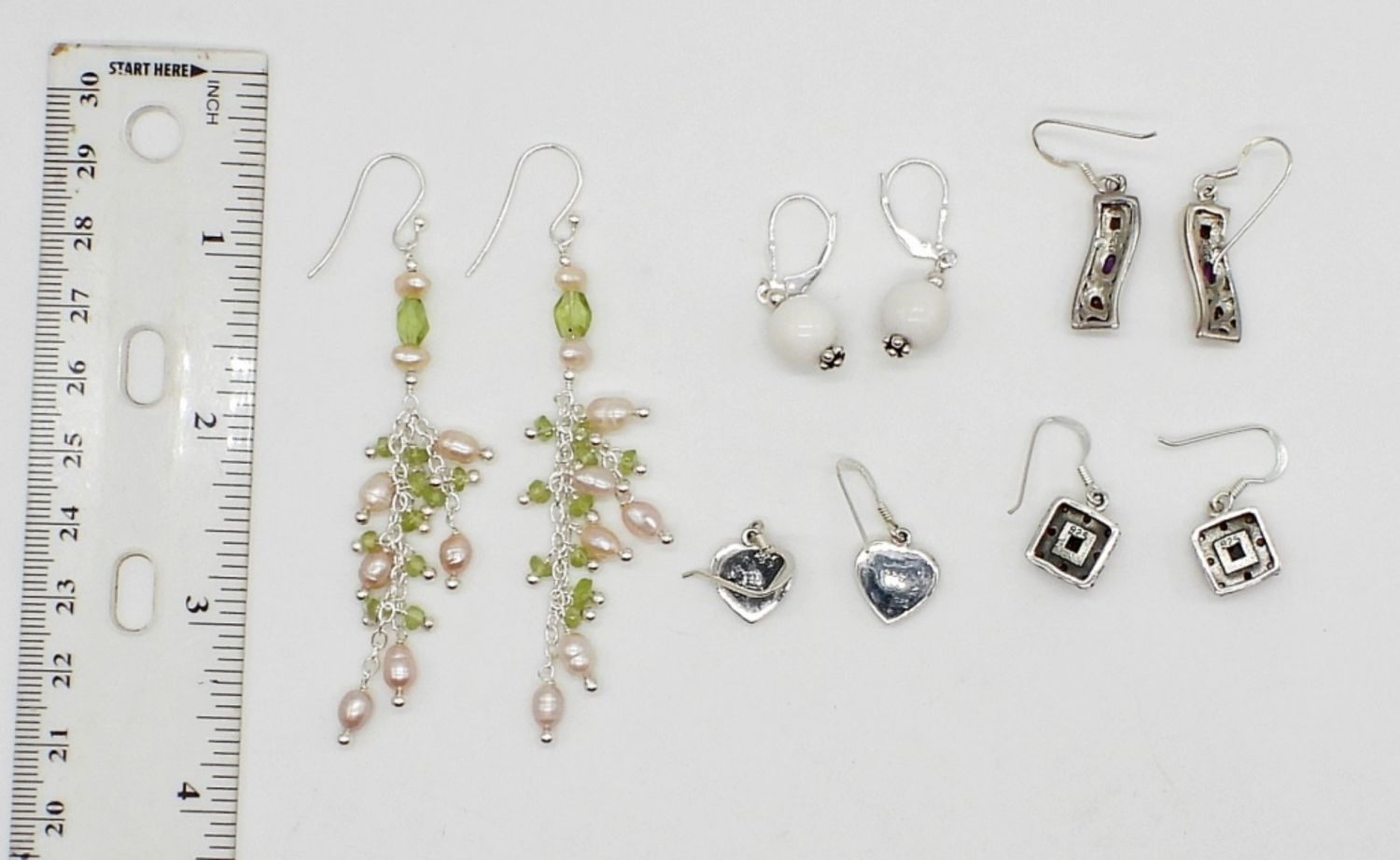 15 DWT; STERLING PIERCED DANGLY EARRINGS WITH NATURAL STONES – (4) MARKED 925